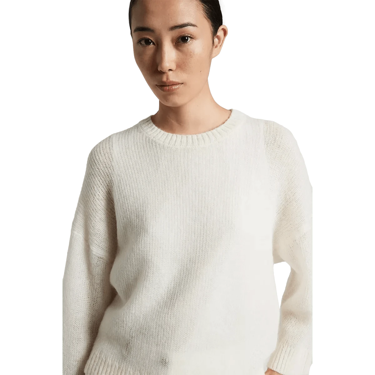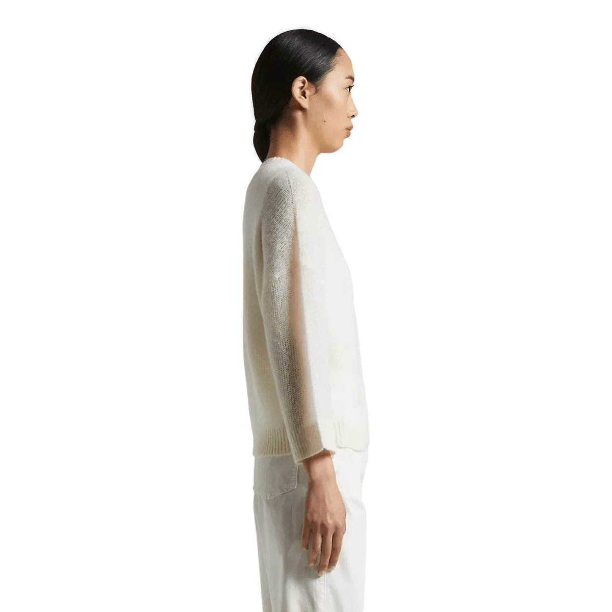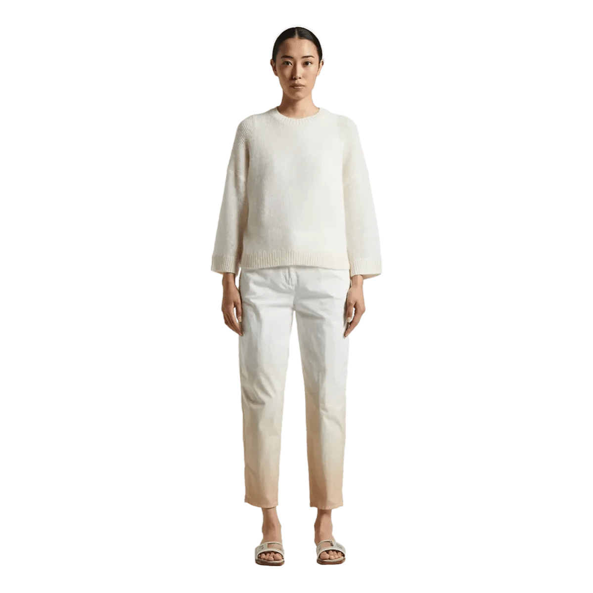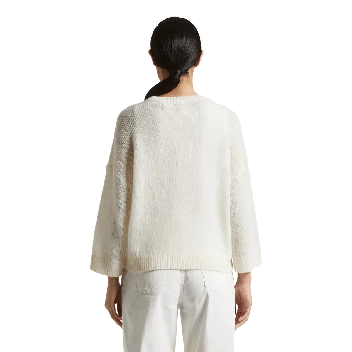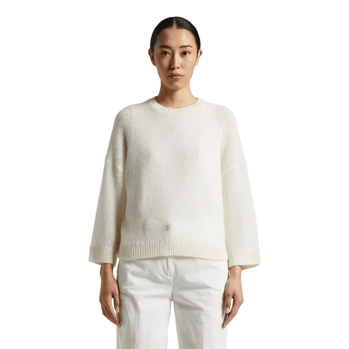 Deze lichte tricot trui, vervaardigd uit virgin wool en alpaca, omsluit het lichaam als een warme, comfortabele omhelzing. Ideaal voor de overgang van winter naar lente, biedt dit kledingstuk zowel verfijning als draagcomfort. De klassieke tricotsteek (stocking stitch) zorgt voor een subtiele elegantie en een zachte textuur. Met driekwart mouwen, geribde boorden en een regular fit is deze trui een veelzijdige essential voor elk seizoen.