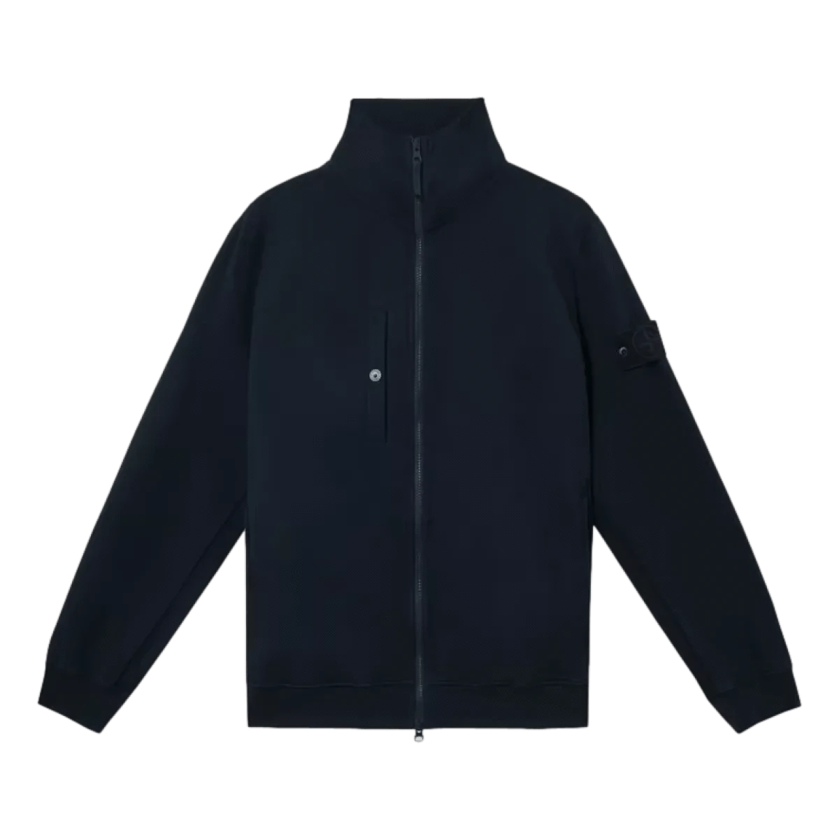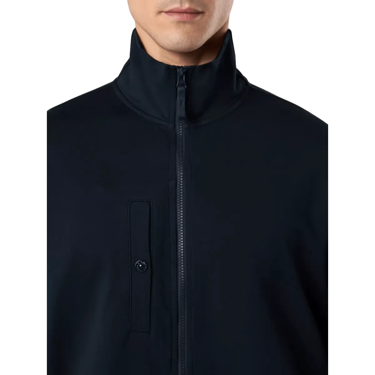 Sweatshirt van stretchkatoenfleece, met staande kraag, borstzakje, geribbelde jersey inzetstukken en een tweewegritssluiting. Garment dyed.