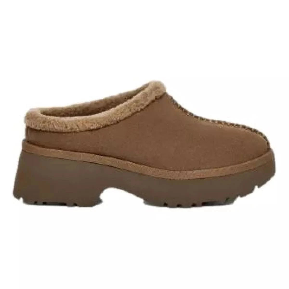 Gek op klompen? Hier is je volgende favoriet. De New Heights Cozy-klomp is gemaakt met suède, gevoerd met geüpcycled UGGplush en voorzien van een lichtgewicht EVA-buitenzool. Dit model staat net als het origineel voor een moeiteloze stijl, maar dan warmer dankzij de voering. Met onze opvallende dubbele naad en een stijlvolle hak van 5,1 cm wordt deze schoen gegarandeerd een favoriet in je schoenencollectie.