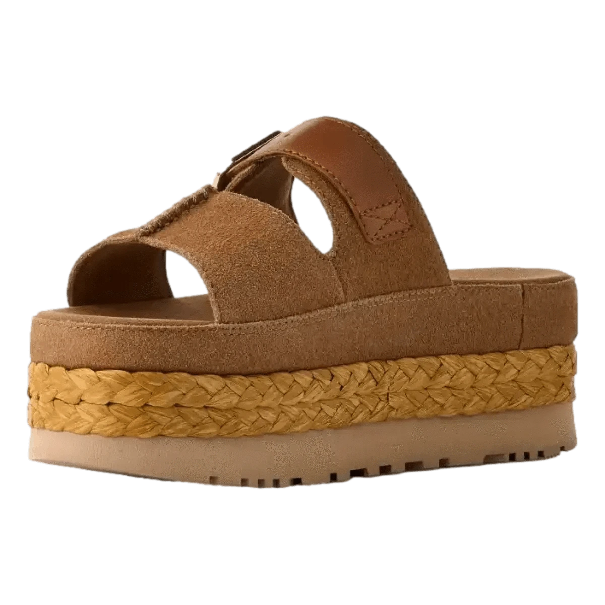 Onze Aubrey-slipper is helemaal klaar om op stap te gaan. Deze slipper met strandvibes heeft een stevige plateauzool en is gemaakt van een mix van suède, leer en raffia. Dit model met EVA-buitenzool van hernieuwbaar suikerriet en zachte, ademende voering van microvezel is heerlijk licht en o zo comfortabel. Een verdekt elastisch inzetstuk zorgt voor gemakkelijke flexibiliteit, terwijl je de pasvorm kunt verstellen wanneer je maar wilt met de gesp op het bandje.