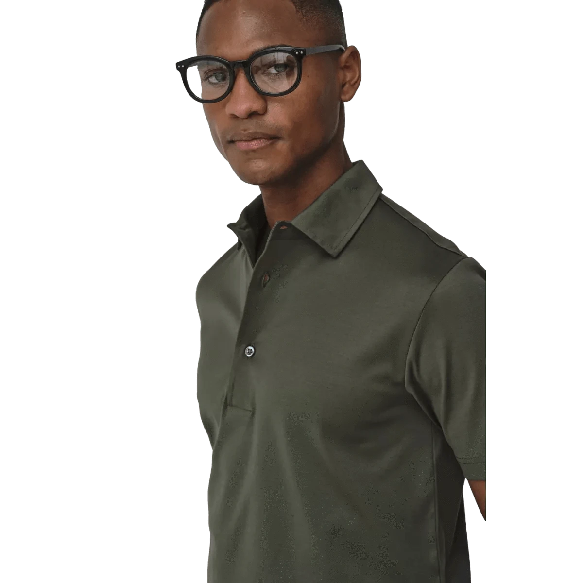 Deze verfijnde polo is een toonbeeld van Italiaans vakmanschap. Vervaardigd uit luxueus interlock Supima katoen en afgewerkt met parelmoeren Trocas knopen, biedt dit shirt een perfecte balans tussen comfort, stijl en kwaliteit. De getailleerde pasvorm en klassieke Schiller kraag maken het een elegant en tijdloos item.