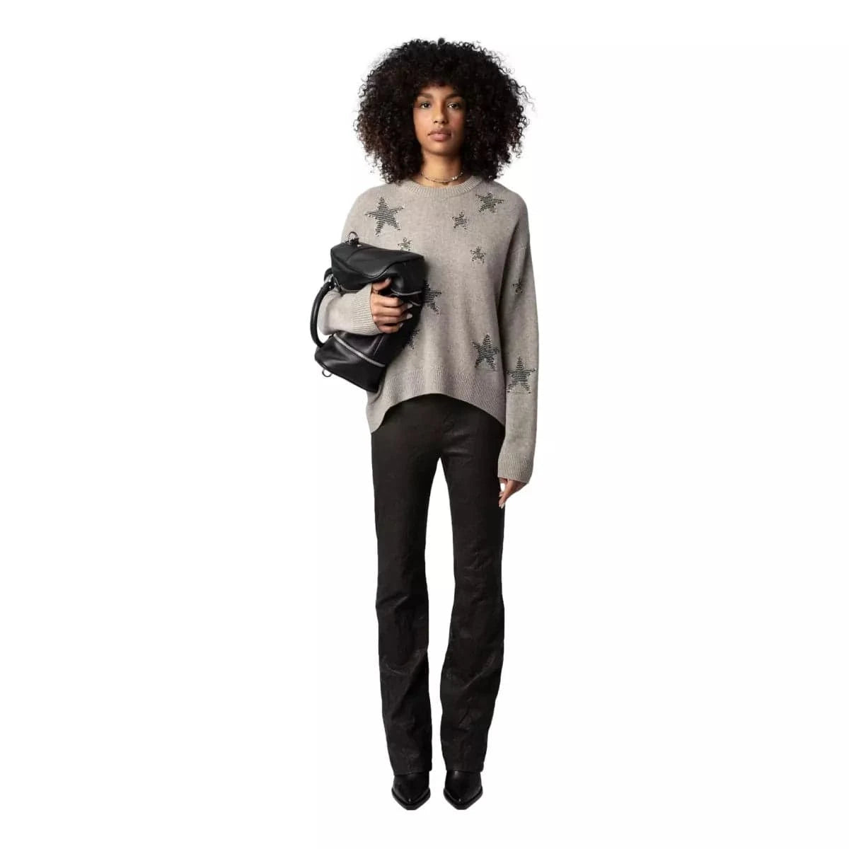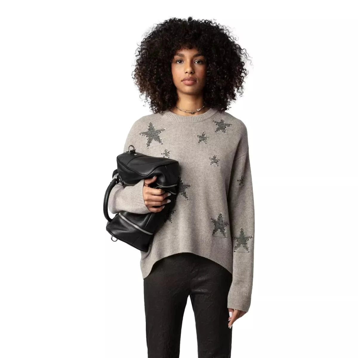 De Zadig & Voltaire Top Taupe met Sterren is een perfecte balans tussen edgy en elegant. Deze top in een zachte taupe kleur is versierd met opvallende sterren, waardoor het een stijlvolle en speelse uitstraling krijgt. Of je nu een casual dag hebt of een avondje uit, deze top voegt moeiteloos een vleugje rock 'n roll toe aan je outfit.