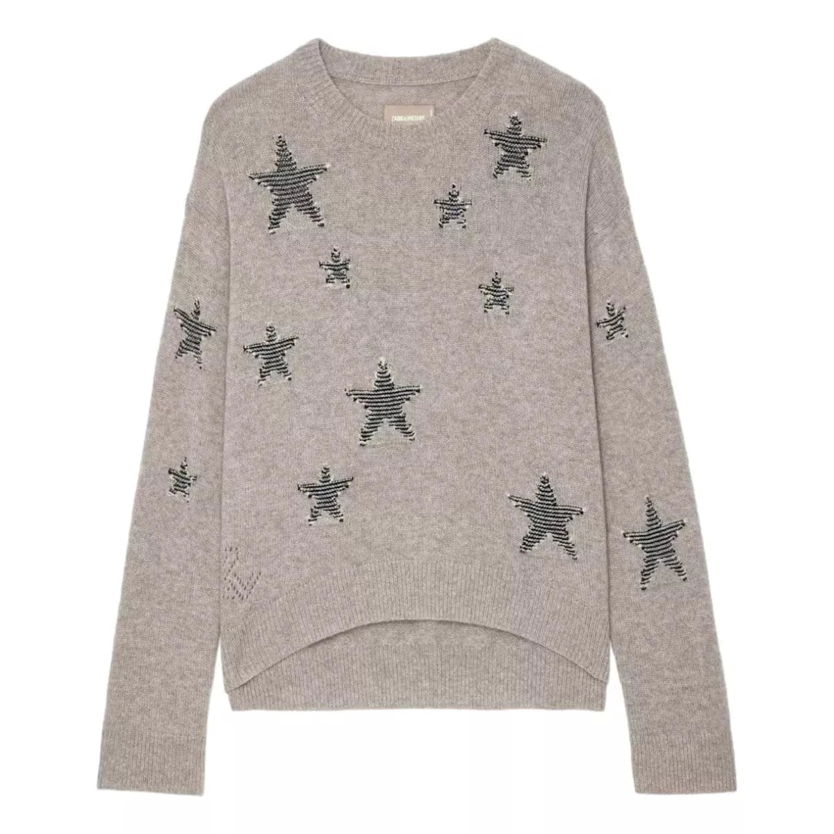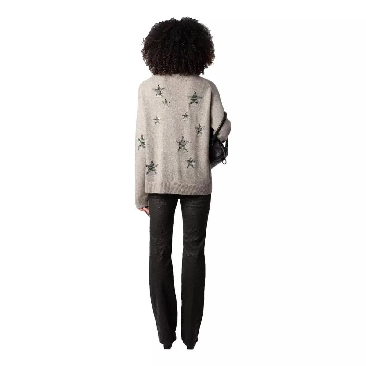 De taupekleurige stof zorgt voor een subtiele, verfijnde uitstraling, terwijl de sterrenprint het een moderne, gedurfde twist geeft. Deze top is ideaal om te combineren met zowel jeans als een leren broek voor een stoere, maar toch vrouwelijke look. Het is het perfecte item voor modebewuste vrouwen die van luxe met een edgy flair houden.