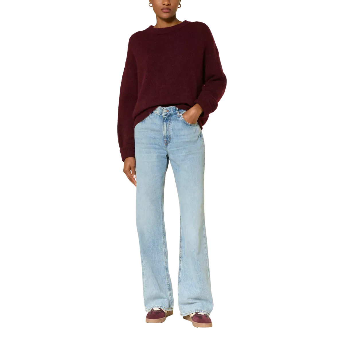 SEO zoekwoorden: American Vintage trui, bordeaux trui, dames trui, stijlvolle trui, zachte trui, casual en chique trui, herfst winter mode.