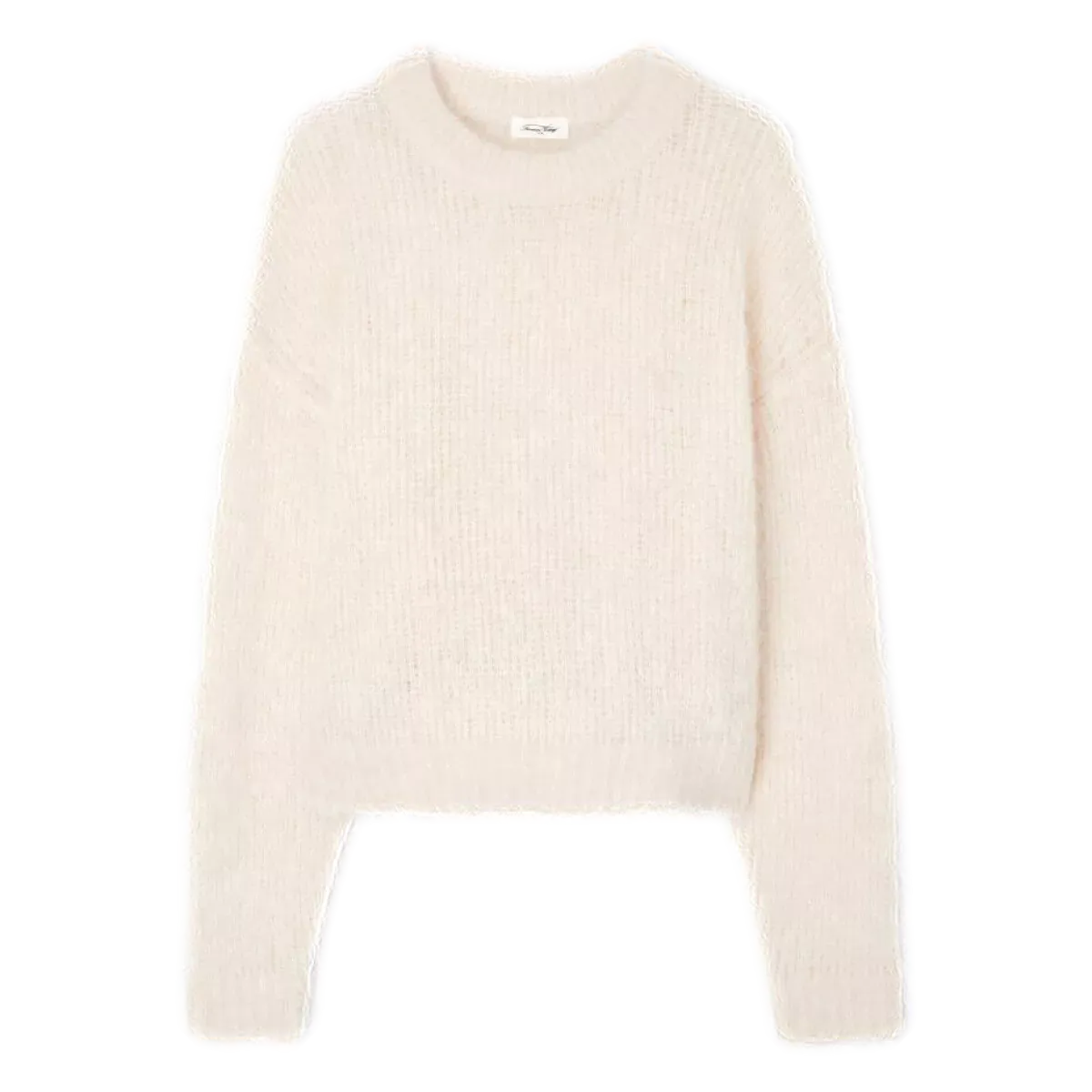 Gemaakt van hoogwaardige materialen, voelt de trui zacht en luxueus aan op de huid. Het eenvoudige, tijdloze ontwerp van American Vintage maakt het gemakkelijk te combineren met jeans, rokken of elegante broeken. De frisse witte kleur geeft elke look een verfijnde en moderne uitstraling.