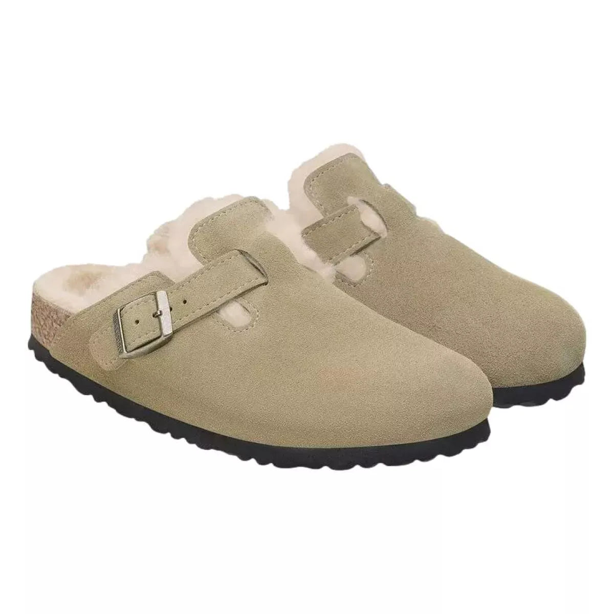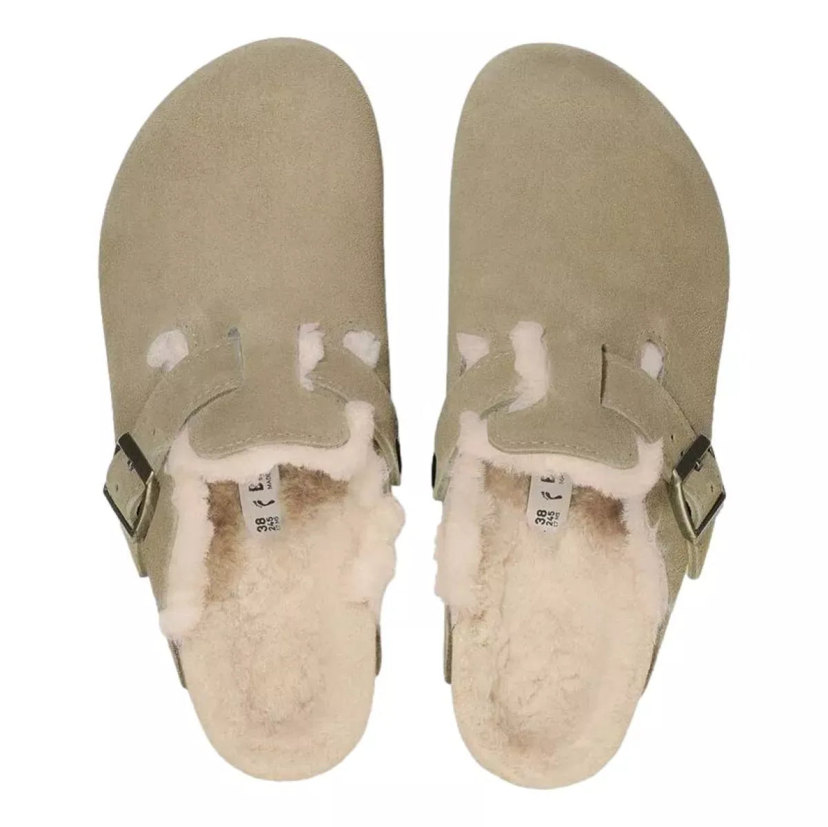 Birkenstock Boston Suede Lamswol Taupe - Match Laren