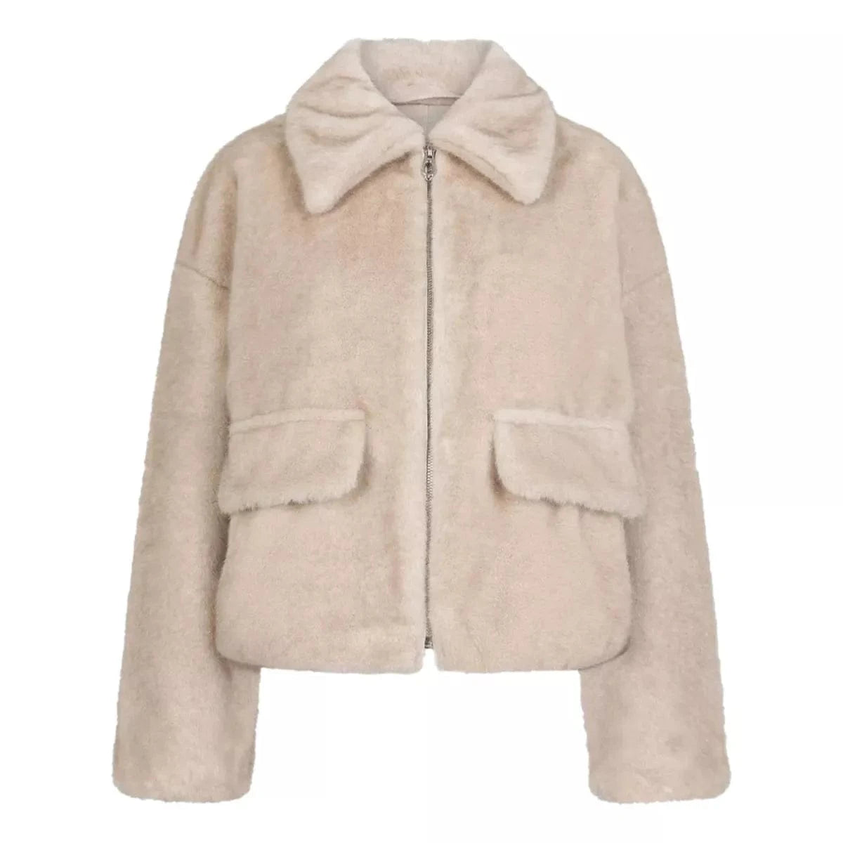 De zachte ecru-kleur maakt het jack perfect te combineren met zowel neutrale als opvallende tinten. Dankzij de relaxte pasvorm en subtiele details kun je het moeiteloos dragen over een casual jeans, maar ook stijlvol combineren met een jurk of pantalon. Het is het ultieme kledingstuk voor een moderne, zelfverzekerde uitstraling.
