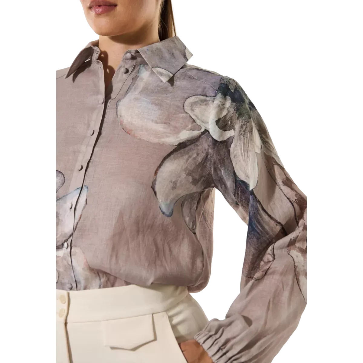 De zachte taupe kleur geeft een tijdloze, veelzijdige uitstraling die moeiteloos te combineren is met andere kledingstukken. Het verfijnde Belladonna-design met subtiele details zorgt voor een elegante, vrouwelijke touch.