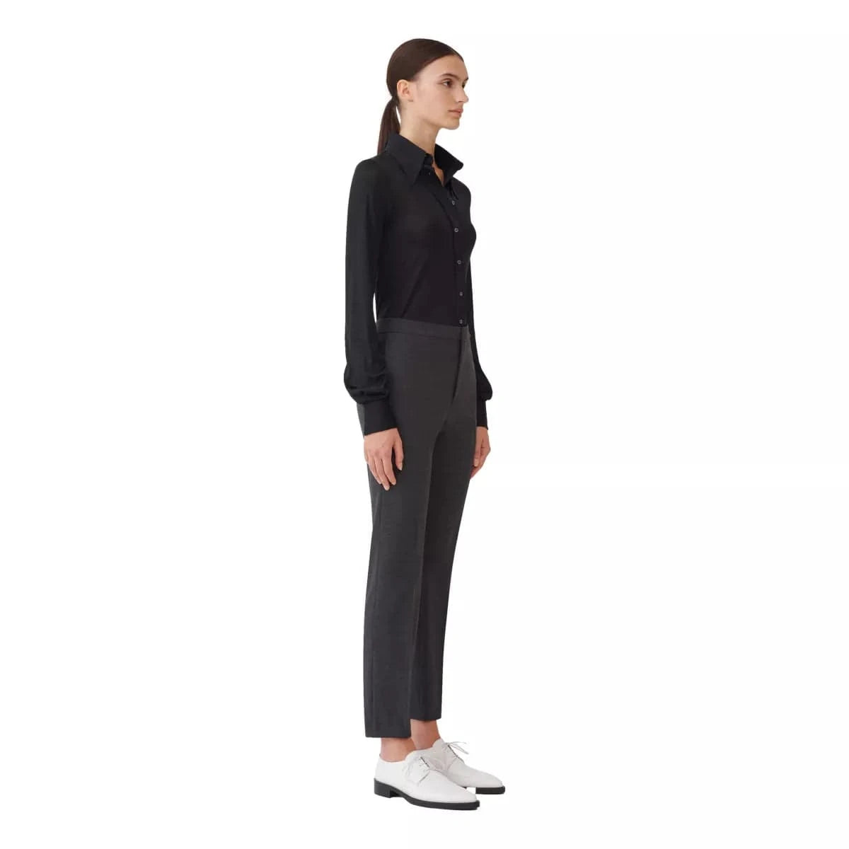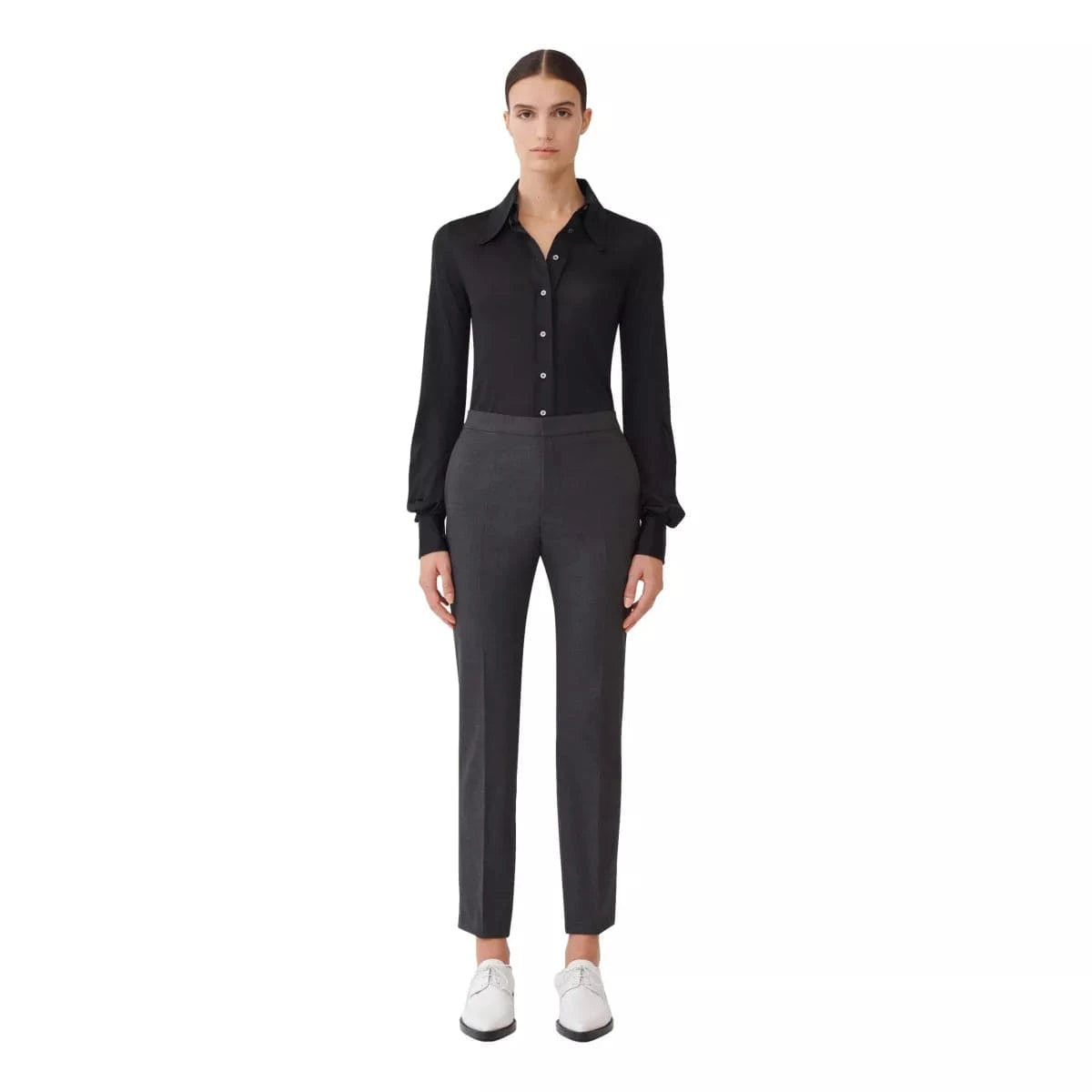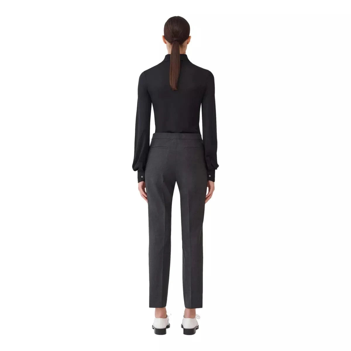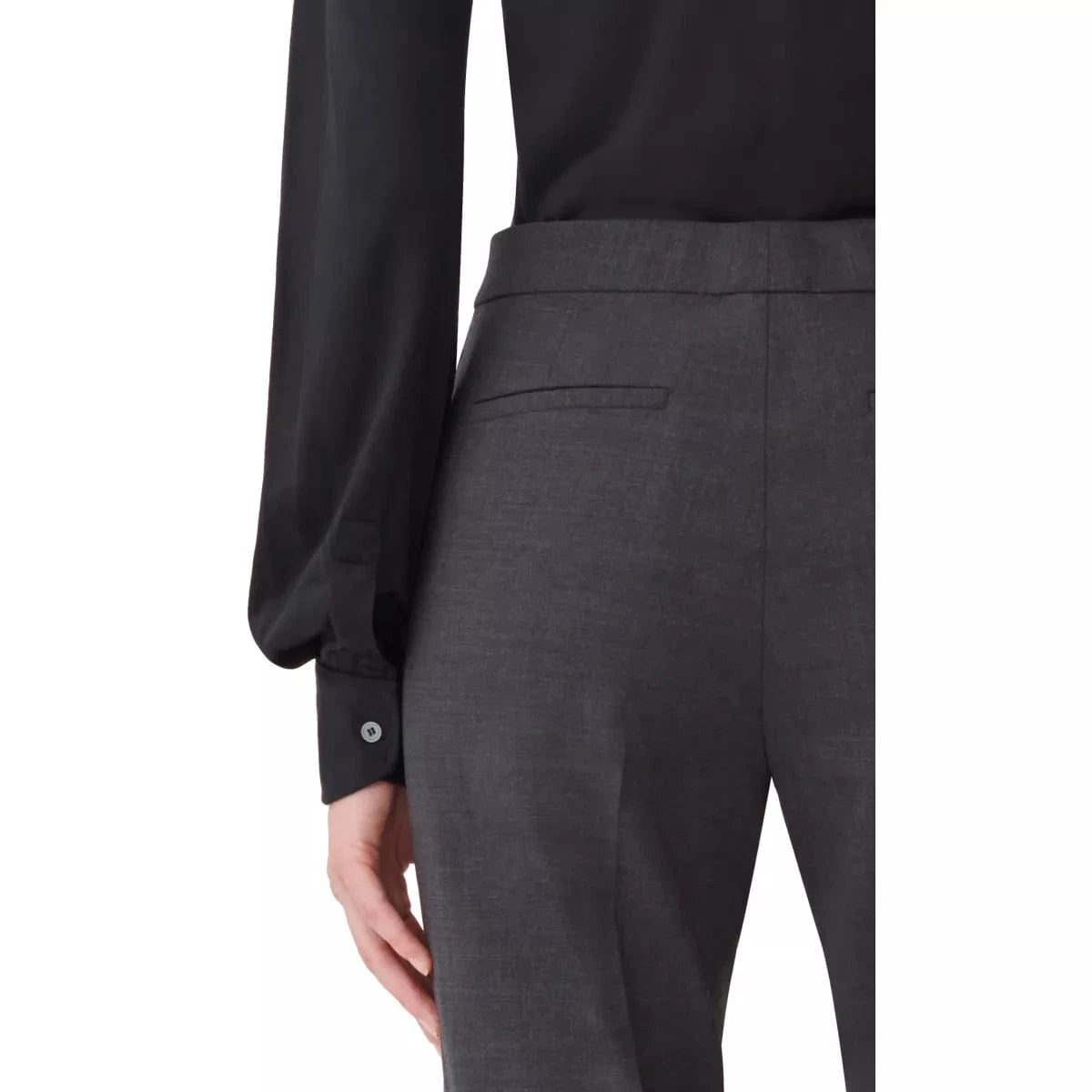 Elegant trousers by Fabiana Filippi with a masculine-inspired cut, made of bi-stretch cool wool. Regular fit model, the star of everyday looks. Combine it with the Fabiane Filippi Blazer Antraciet.