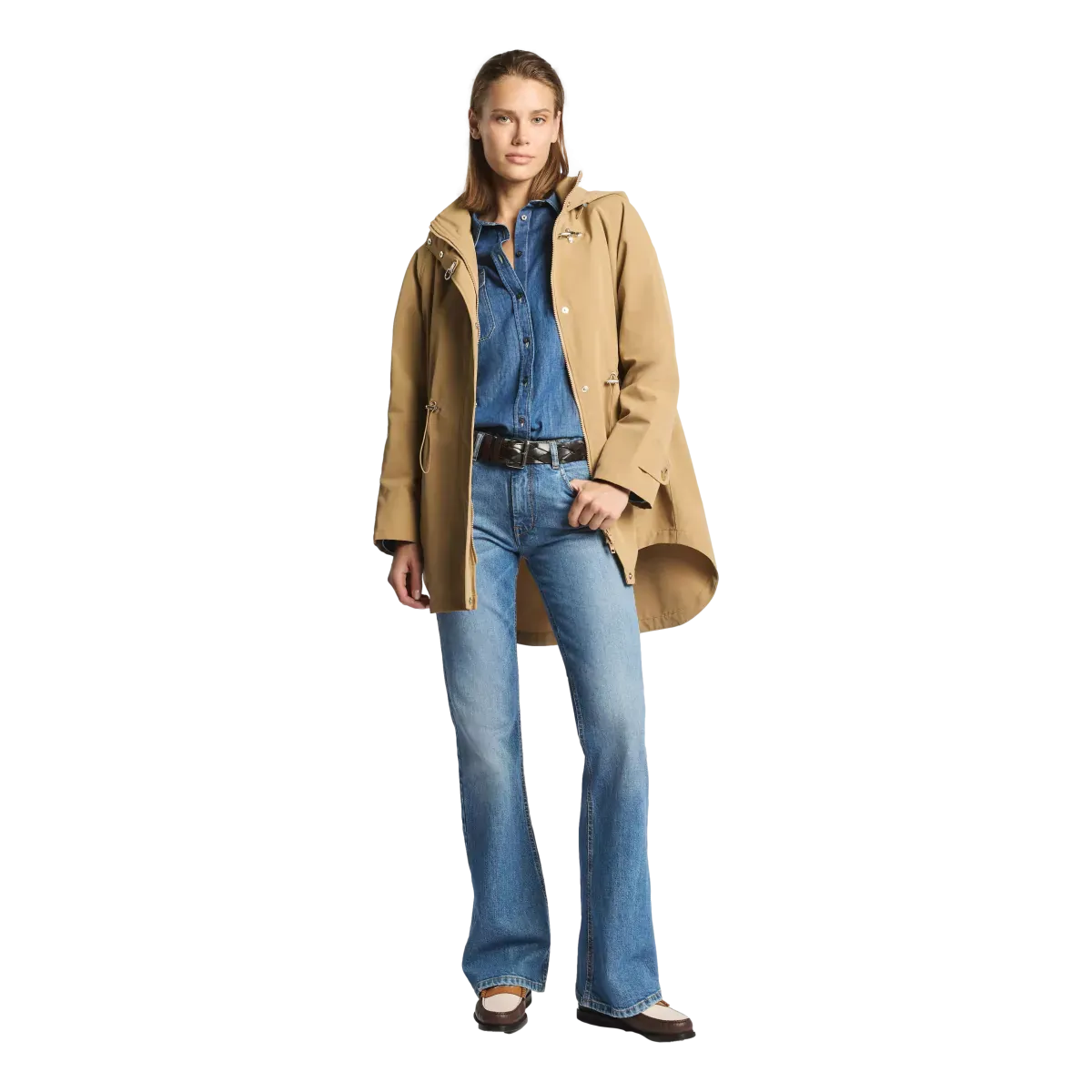 De parka is ongevoerd en heeft een verstelbare capuchon en taillekoord voor een persoonlijke en comfortabele pasvorm. De ritssluiting wordt aangevuld met verborgen drukknopen en de iconische Fay-haak bij de kraag voor een elegante finish. Elk detail is zorgvuldig afgewerkt in Italië, met focus op kwaliteit en vakmanschap.