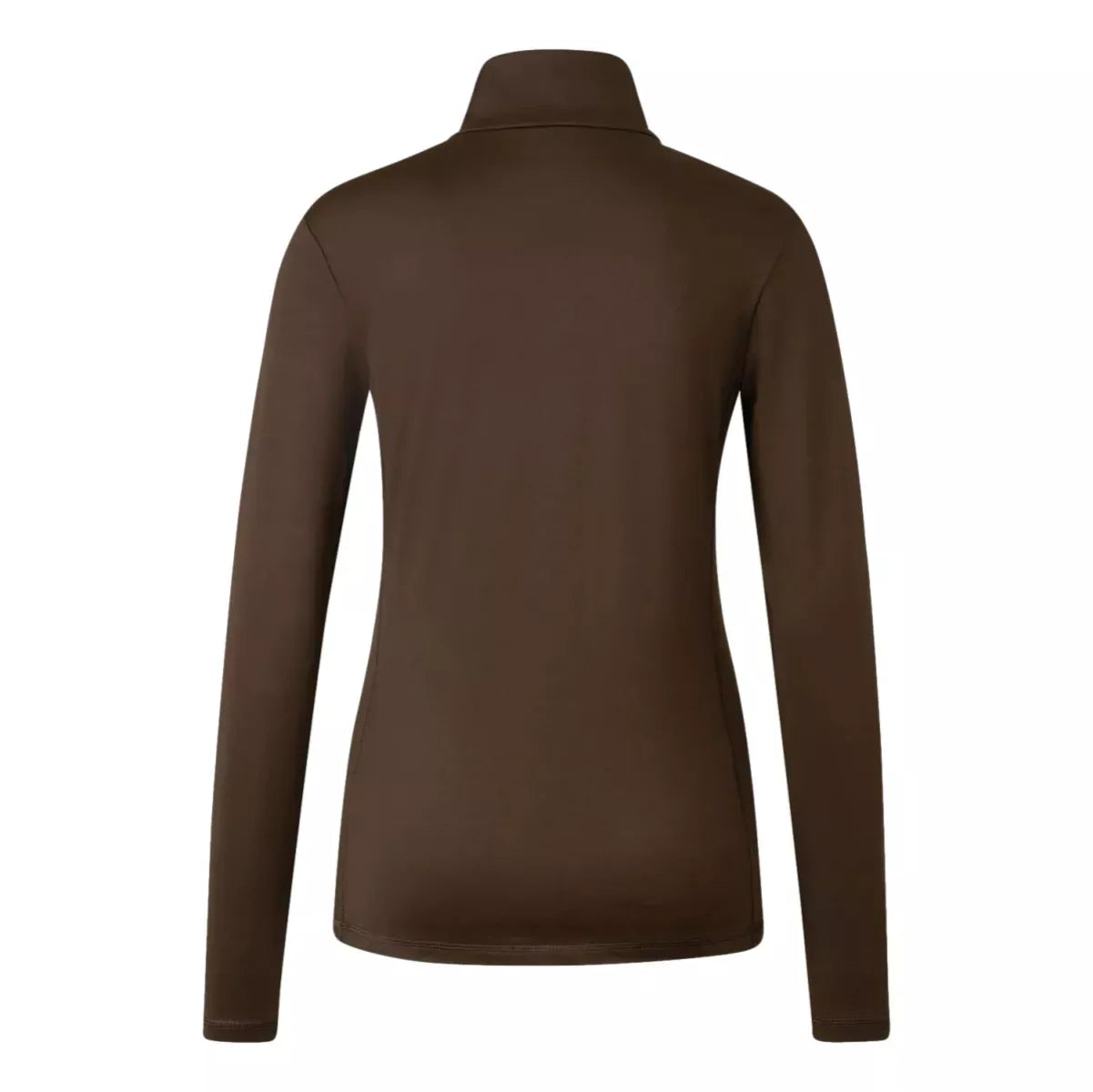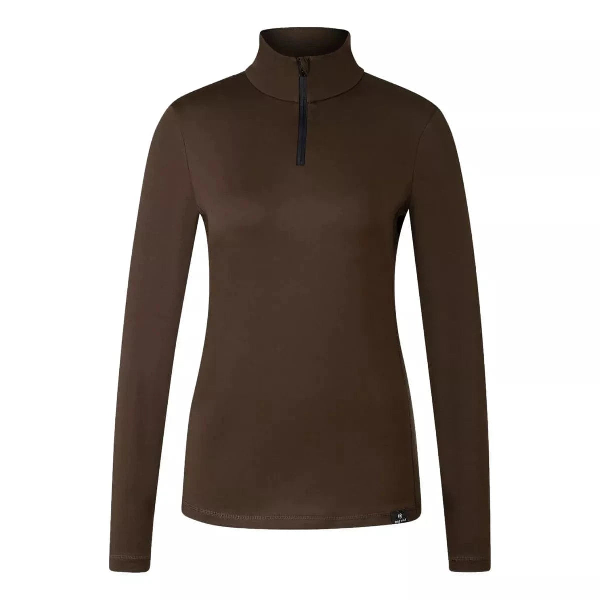De Margo pulli is vervaardigd uit een technische stretchstof die optimale bewegingsvrijheid biedt en tegelijkertijd warm, ademend en sneldrogend is. De donkerbruine kleur straalt elegantie en warmte uit, en laat zich moeiteloos combineren met andere skikleding of je casual winterlook.