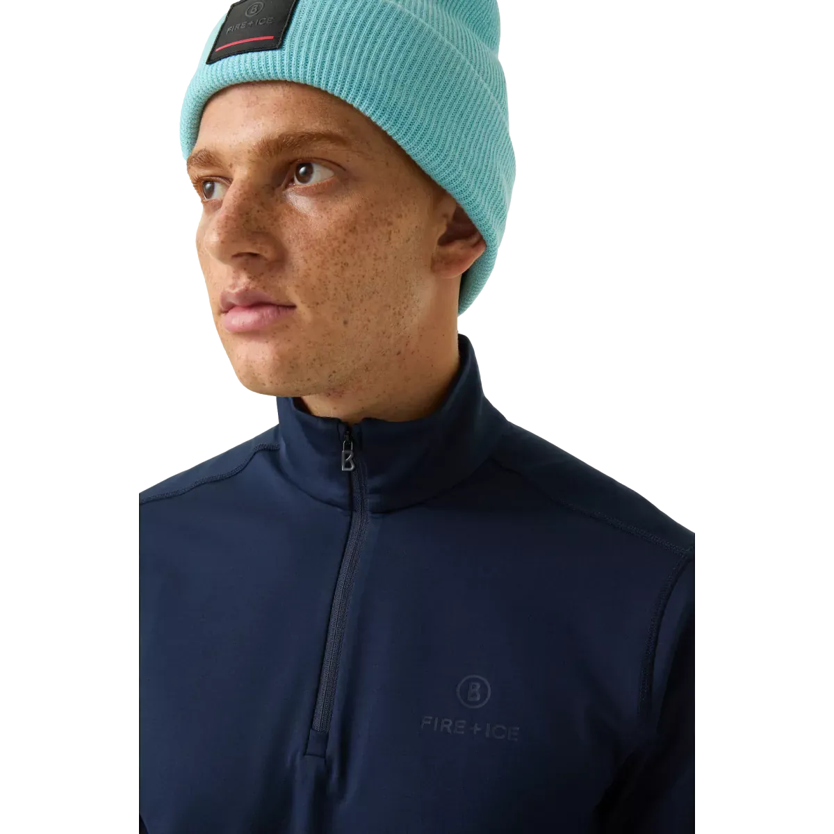 Ga de piste op in stijl en comfort met de Fire & Ice Pascal Ski Pulli in klassiek donkerblauw. Deze herenpullover combineert een sportieve, aansluitende pasvorm met rekbaar, sneldrogend materiaal, ideaal voor actieve dagen in de sneeuw. De opstaande kraag met ¼-rits en subtiele reflecterende details zorgen voor warmte, bewegingsvrijheid en zichtbaarheid tijdens je wintersportavonturen. Perfect als midlayer onder je ski‑jas of casual te dragen na het skiën.