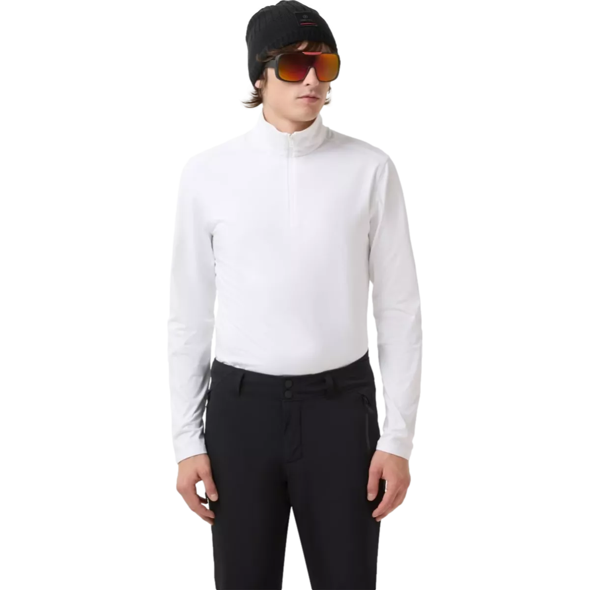 Breng stijl en functionaliteit samen op de piste met de Fire & Ice Pascal Ski Pulli in elegant Off White. Deze herenpullover biedt een sportieve, aansluitende pasvorm en is gemaakt van rekbaar, sneldrogend materiaal, zodat je comfortabel en warm blijft tijdens elke wintersportactiviteit. De opstaande kraag met ¼-rits en subtiele reflecterende details zorgen voor optimale bewegingsvrijheid en zichtbaarheid. Perfect als midlayer onder je ski‑jas of casual te dragen na het skiën.