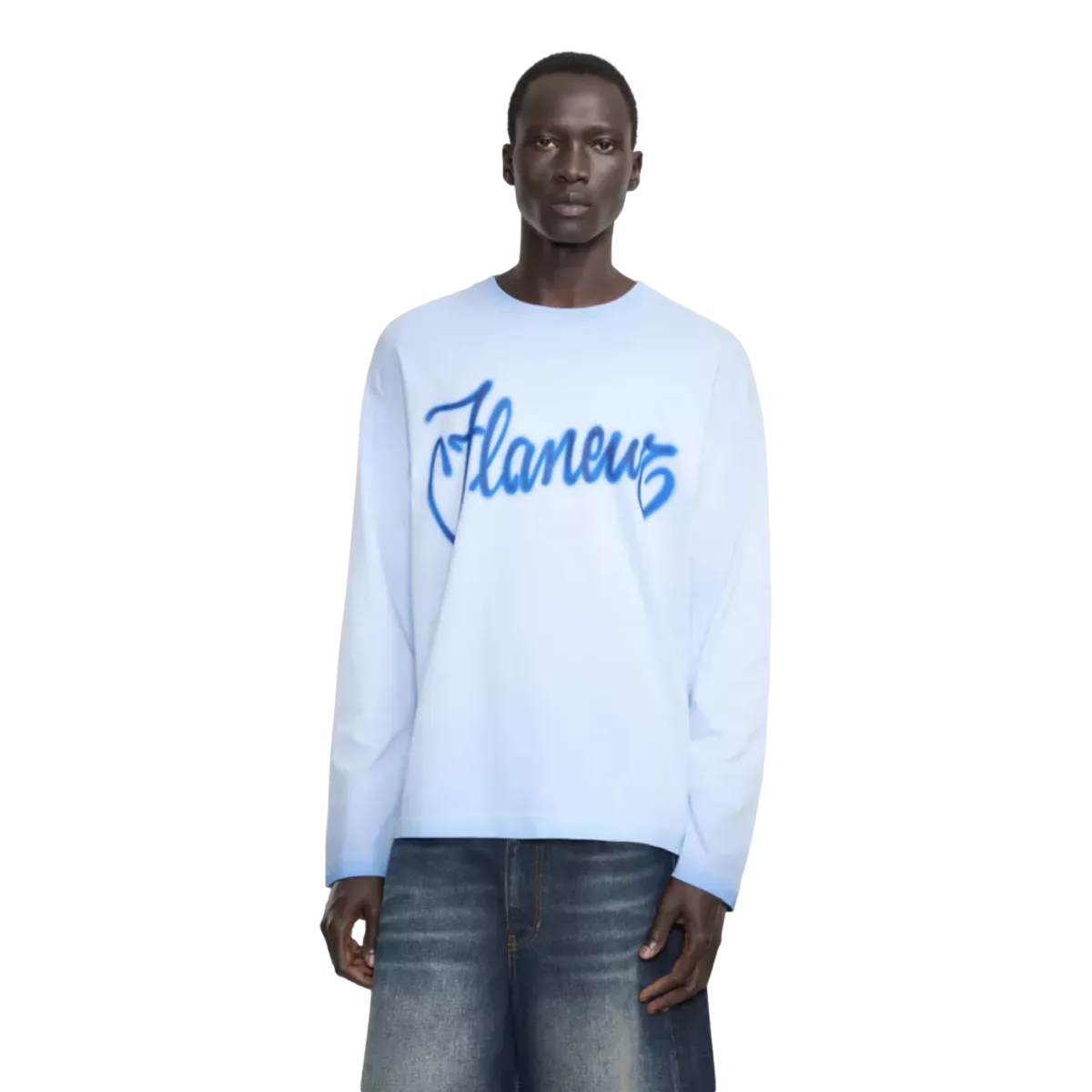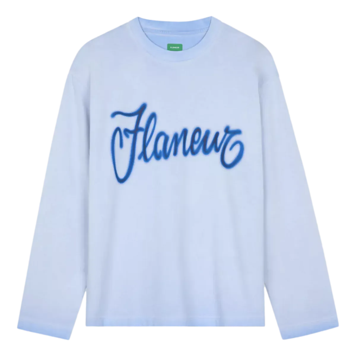 Dit Flaneur longsleeve shirt in washed blue combineert een relaxte, vintage uitstraling met een modern grafisch accent. Dankzij de serigrafische screen print krijgt het shirt karakter en diepte, terwijl de gewassen finish zorgt voor een unieke look die elke outfit moeiteloos versterkt.