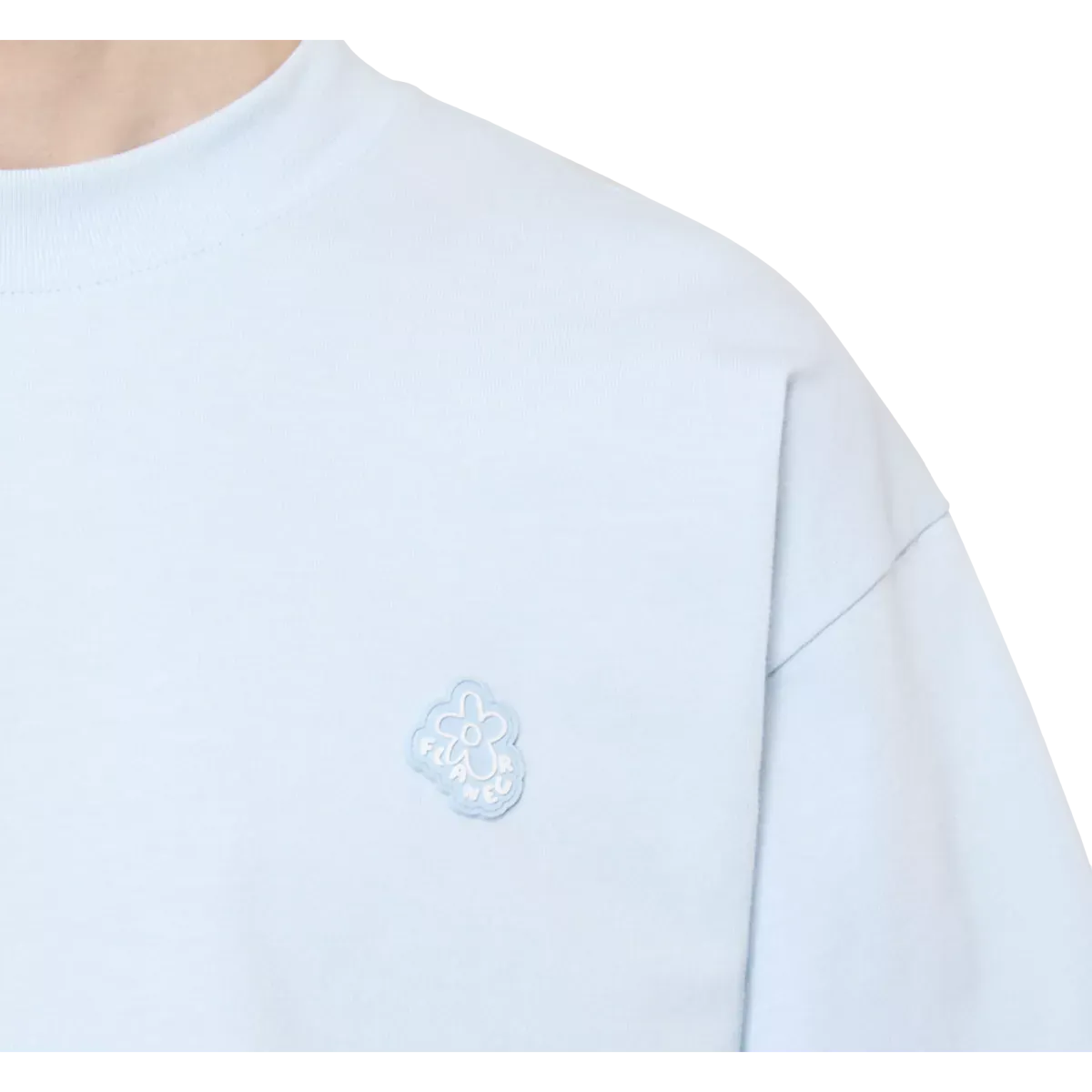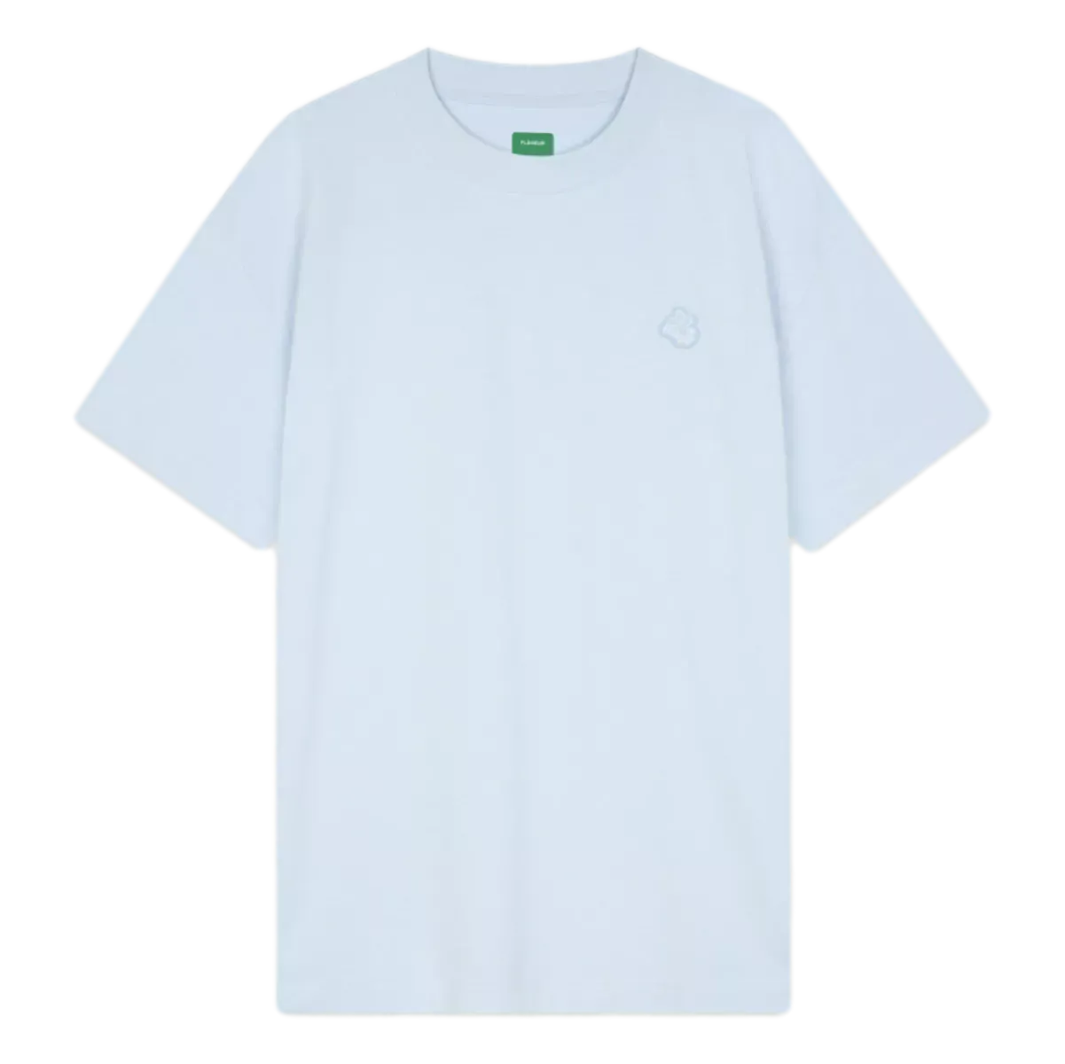 Dit lichtblauwe T-shirt is een frisse essential met een modern accent. De gestikte rubberen patch geeft het ontwerp een stoer, eigentijds karakter en zorgt voor een subtiele statement look zonder in te leveren op veelzijdigheid.