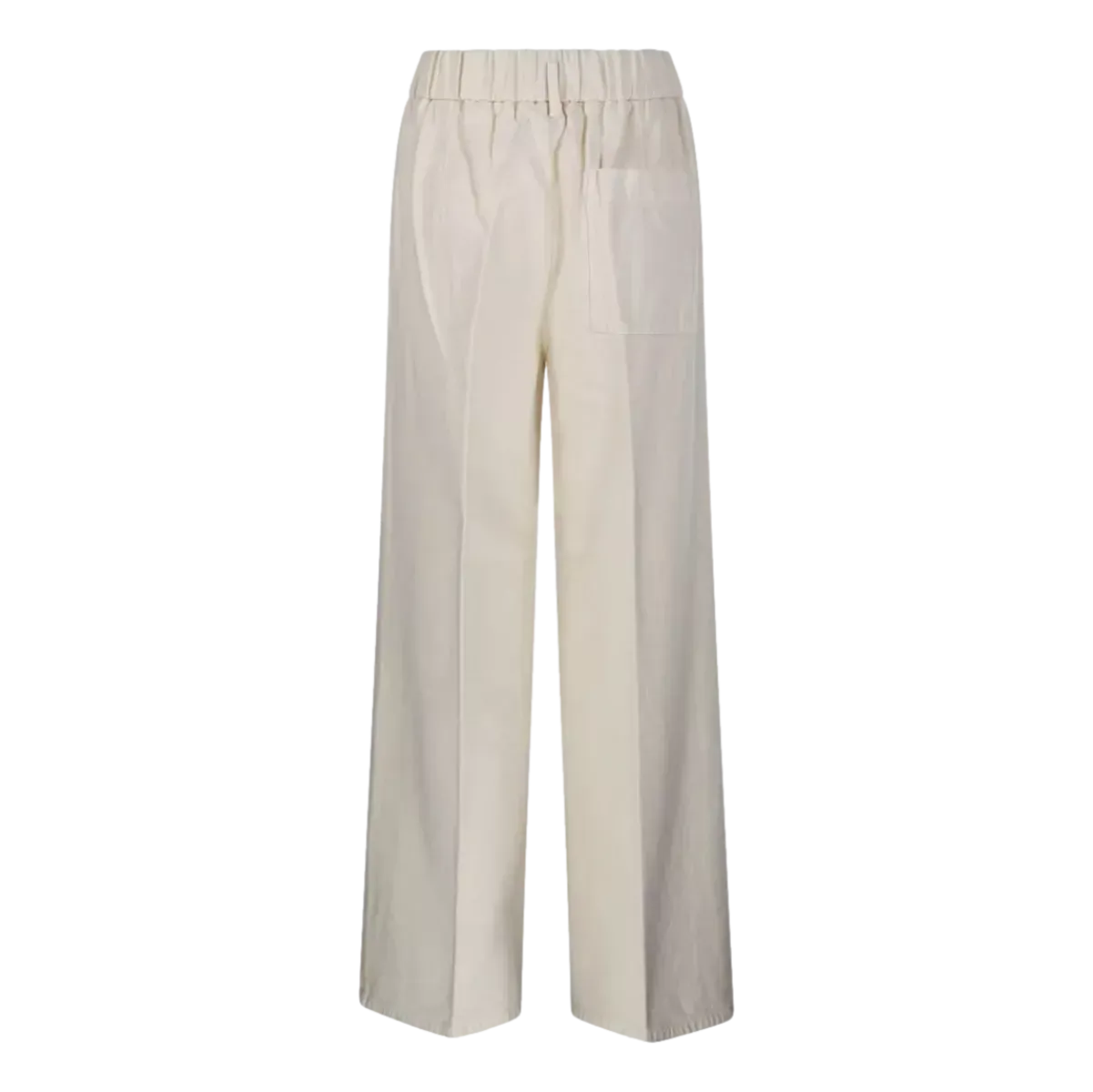 De Forte Forte pantalon in off white straalt pure elegantie en Italiaanse finesse uit. Deze stijlvolle broek is ontworpen voor vrouwen die houden van een minimalistische, luxe look met een moderne touch. De zachte off white kleur zorgt voor een frisse, tijdloze uitstraling en laat zich moeiteloos combineren met zowel neutrale tinten als uitgesproken kleuren.