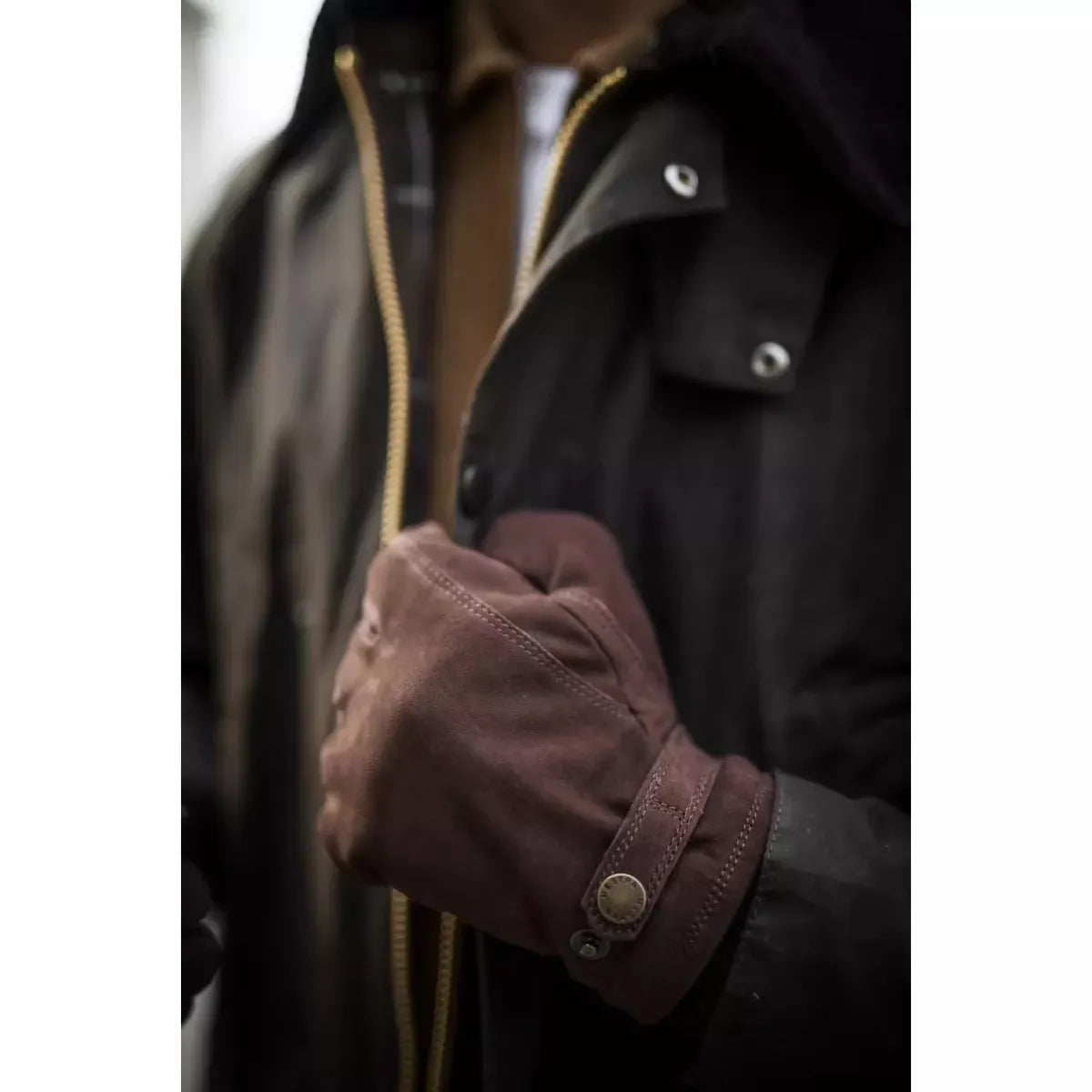 The HESTRA Bergvik Gloves in espresso are classic warm winter gloves sewn in nubuck goatskin. A stylish, minimalist men’s version with a short, ribbed cuff and a leather strap with a press stud on the backhand. A soft, polyester fleece lining with Primaloft Gold synthetic insulation provides comfortable warmth on chilly winter days. This is a comfortable glove that is sporty as well as elegant and works equally well in urban terrain and more rural settings.