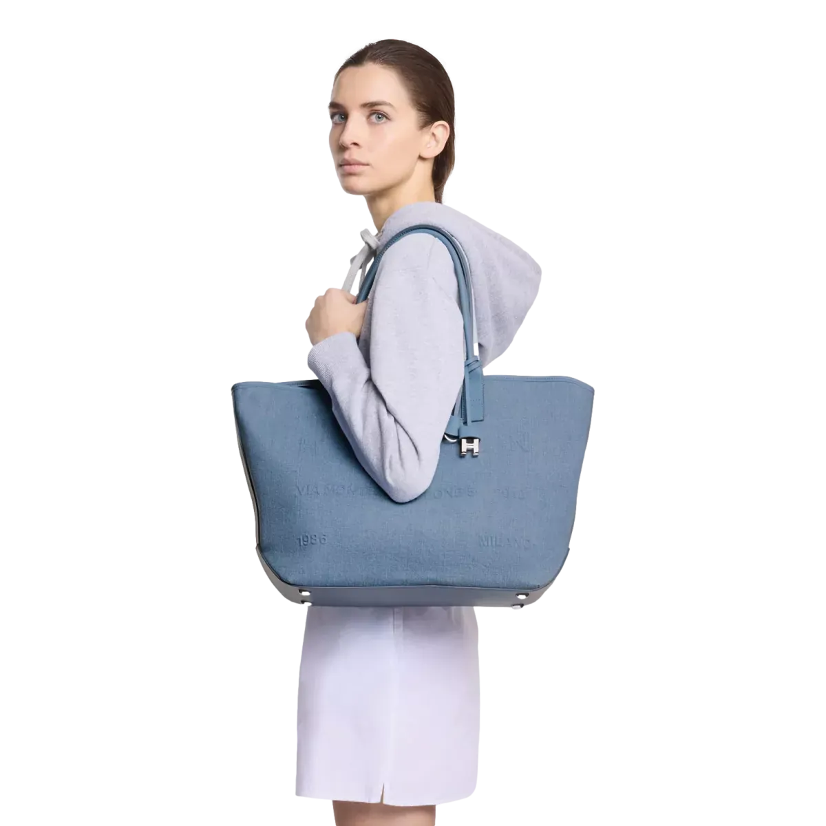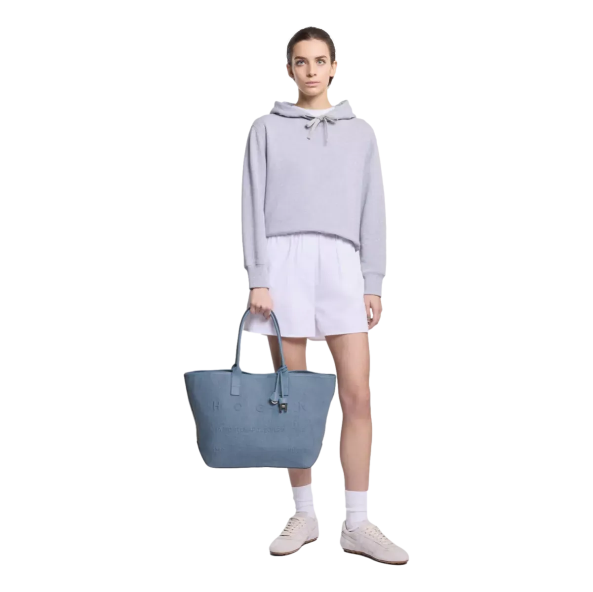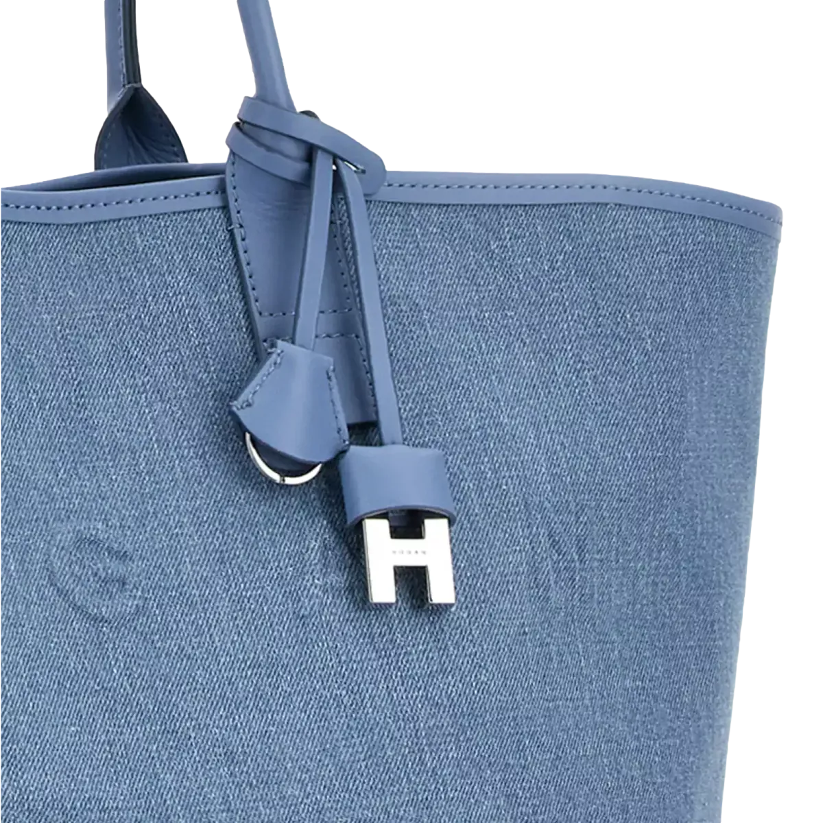 Iconische Hogan shopper, licht, stijlvol en perfect voor elke dag. Deze kenmerkende Hogan shopper is uitgevoerd in een lichtgewicht, zomerse variant en is ideaal voor wie stijl en functionaliteit wil combineren. Het délavé denim geeft de tas een frisse, moderne uitstraling, terwijl het reliëflogo zorgt voor een subtiel maar herkenbaar merkaccent.