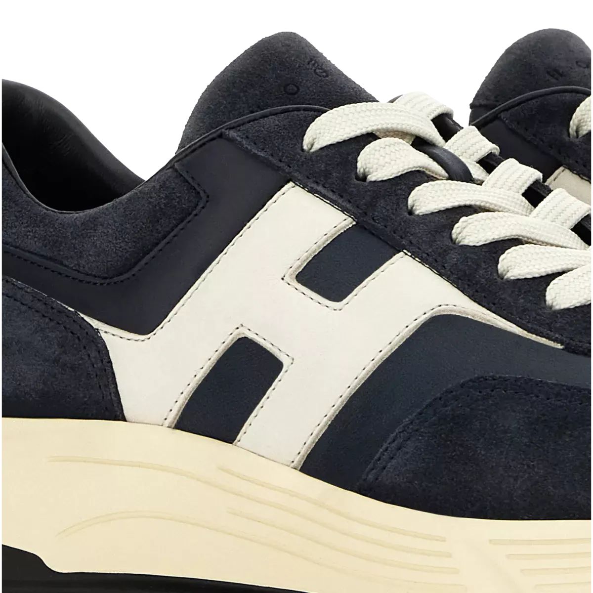 De Hogan Hyperlight sneakers in donkerblauw worden gekenmerkt door vloeiende en dynamische vormen en combineren de lijnen van joggingschoenen met urban kenmerken. Het bovenwerk van suède en nappaleer met schuine H verwijst naar iconische details van het merk. Een dynamische stijl, met een binnenzool van traagschuim en een lichtgewicht buitenzool met spikes.