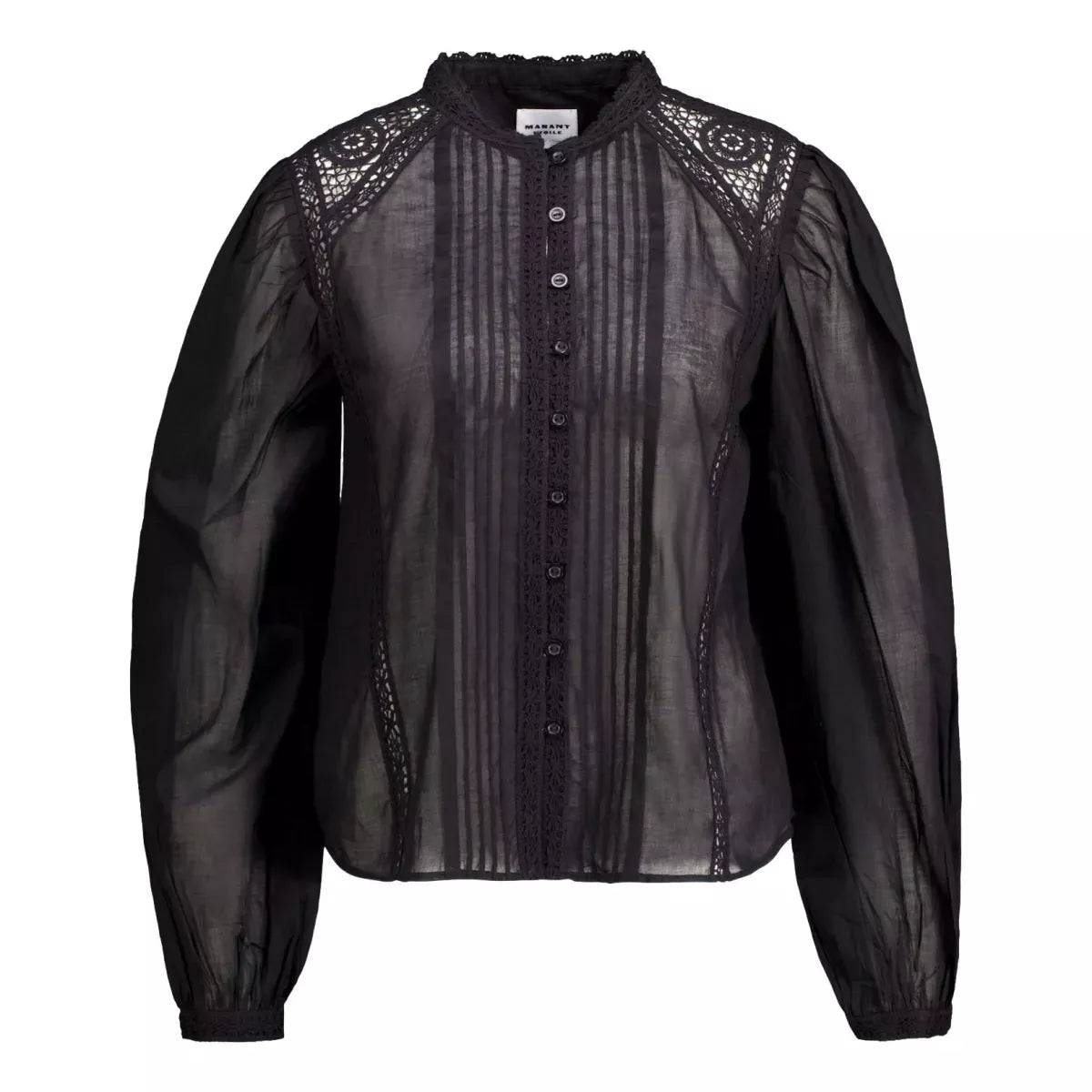 De Isabel Marant Greicy blouse in zwart is een verfijnde keuze voor wie houdt van een vrouwelijke blouse met een krachtige uitstraling. Deze luxe blouse is gemaakt van 100% katoen en uitgevoerd in een diepe, klassieke zwarte tint. Het ontwerp is rijk aan broderie anglaise, fijne plooien op de schouders en een elegante knoopsluiting — perfect in balans tussen bohemien en chic.