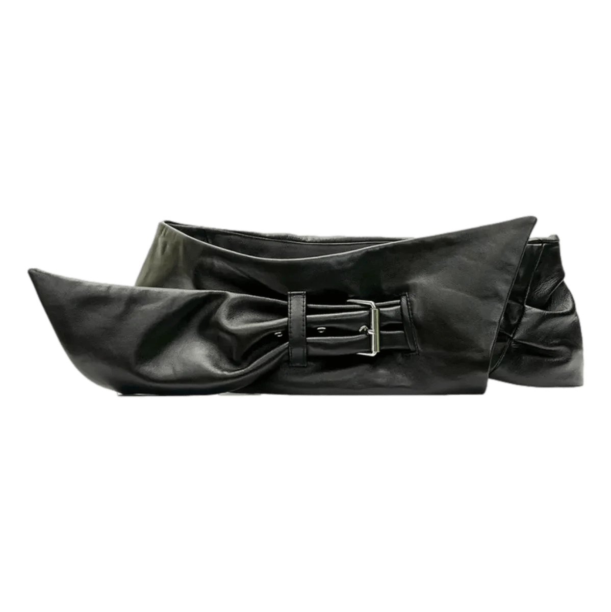- Model: brede leren riem met gedrapeerde staart