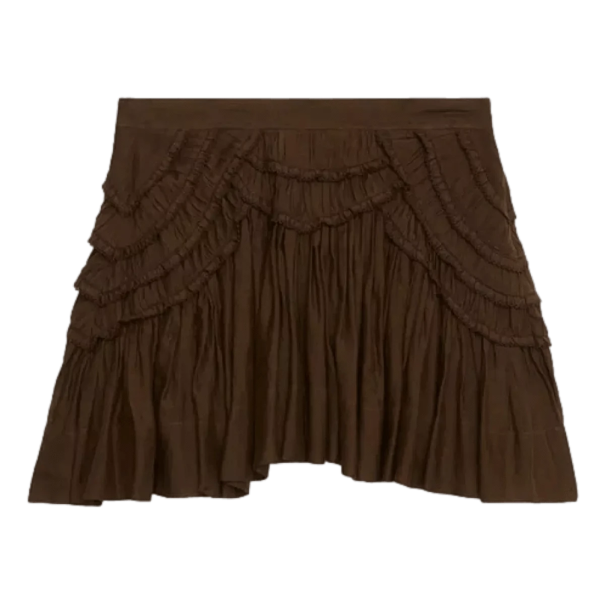 De Ceola-rok straalt luchtige elegantie uit. Gemaakt van katoenen voile met fijne ruches en geplooide details die mooi meebewegen. De aangesloten taille en subtiele flair geven een vrouwelijk, zomers silhouet — stijlvol met sandalen of laarzen.
