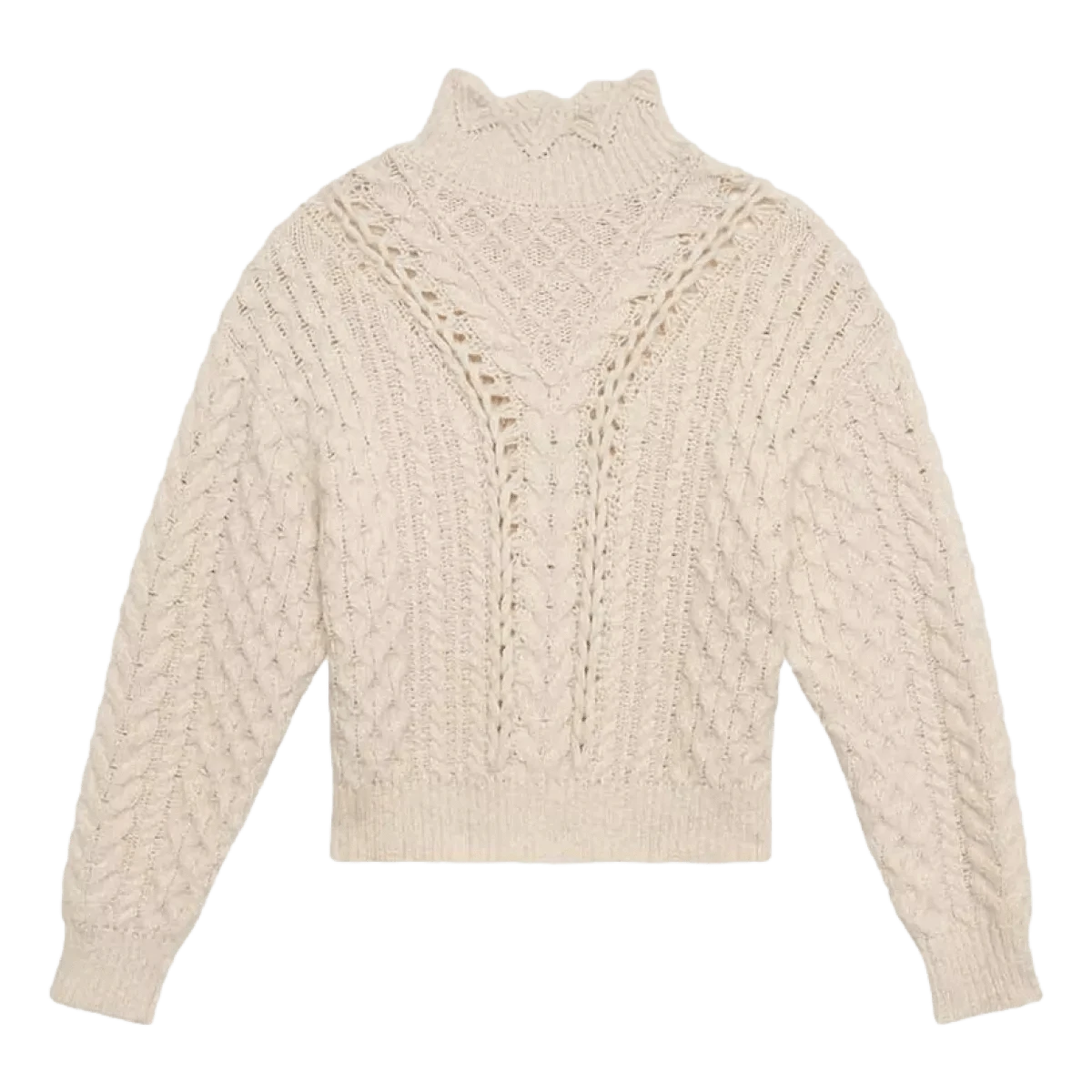 De Bolinea-trui combineert structuur en zachtheid in een kabelgebreide samenstelling. De opstaande kraag met geschulpte rand en de relaxte pasvorm zorgen voor een nonchalante maar verfijnde uitstraling. Ideaal voor een warme, gelaagde winterlook.