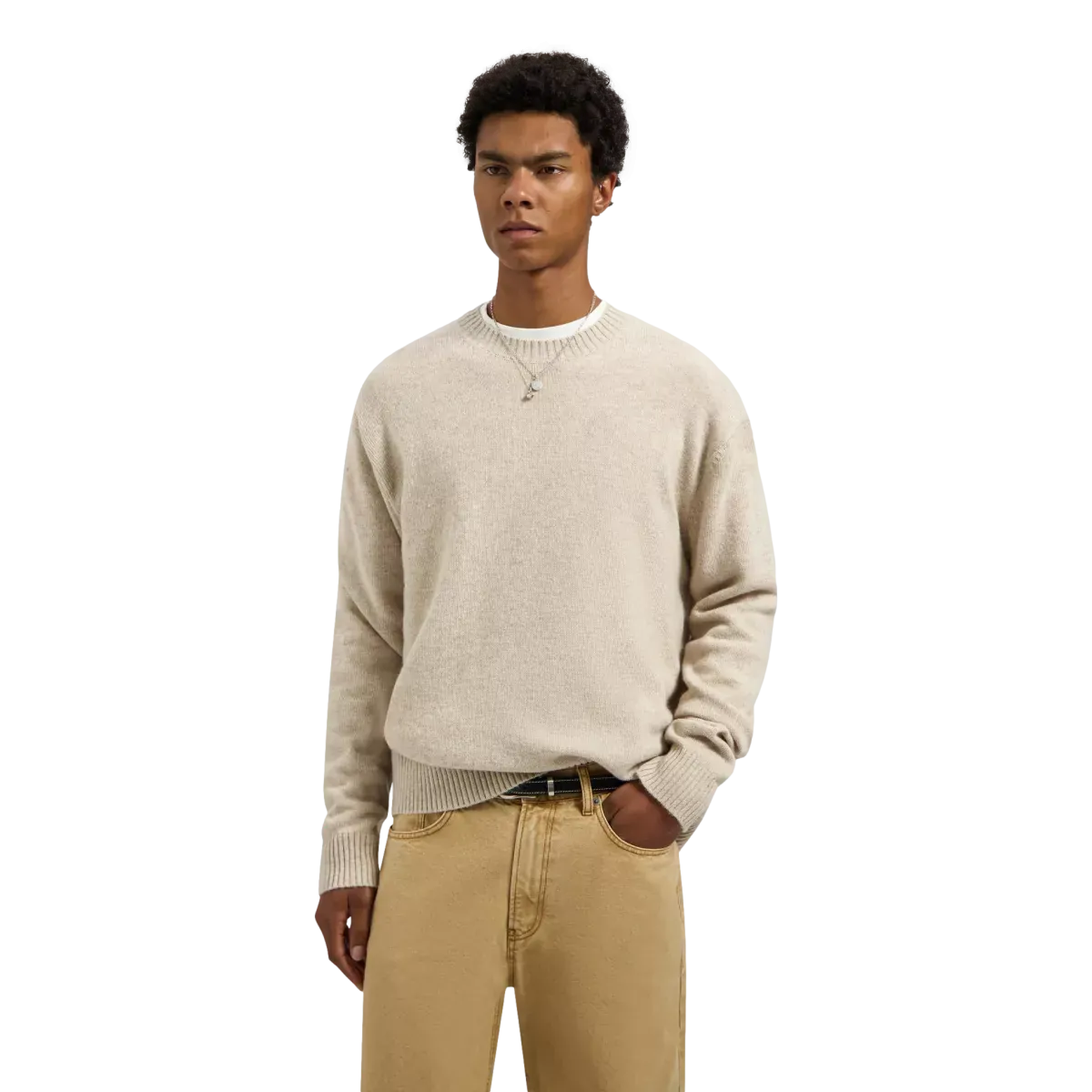 De trui is vervaardigd uit een zachte, warme wolmix die comfortabel aanvoelt en je prettig warm houdt. Het strakke silhouet en de verfijnde textuur geven de knit een moderne, verzorgde uitstraling, waardoor hij moeiteloos past bij zowel casual als meer geklede looks.