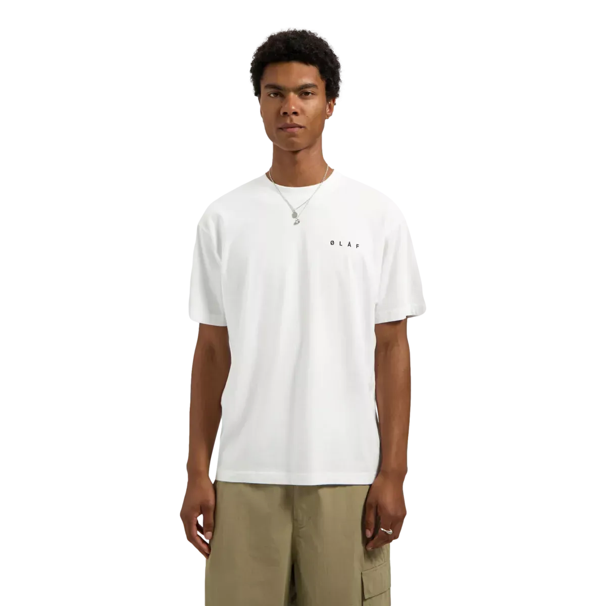 Geef je dagelijkse look een artistieke twist met de Olaf Paintbrush Graphic Tee in Optical White. Dit T-shirt is gemaakt van zacht jersey katoen en heeft een comfortabele regular fit die moeiteloos de hele dag goed zit. De handgeschetste paintbrush graphic geeft het shirt een creatieve, unieke uitstraling, terwijl het subtiele sans OLAF-logo op de borst zorgt voor een minimalistische finishing touch.