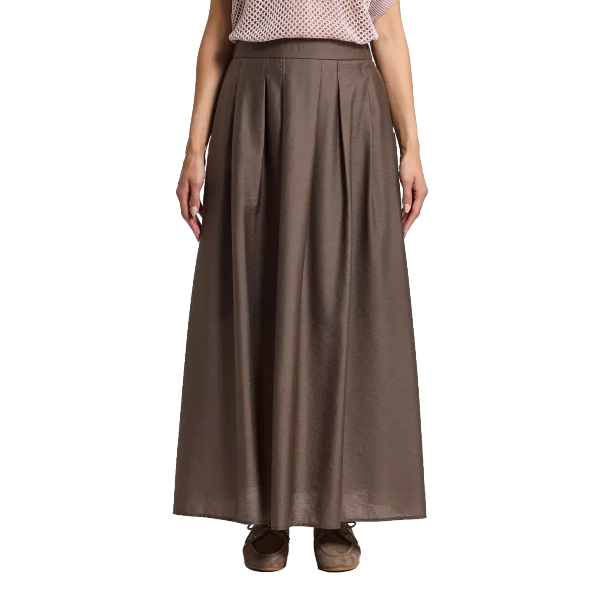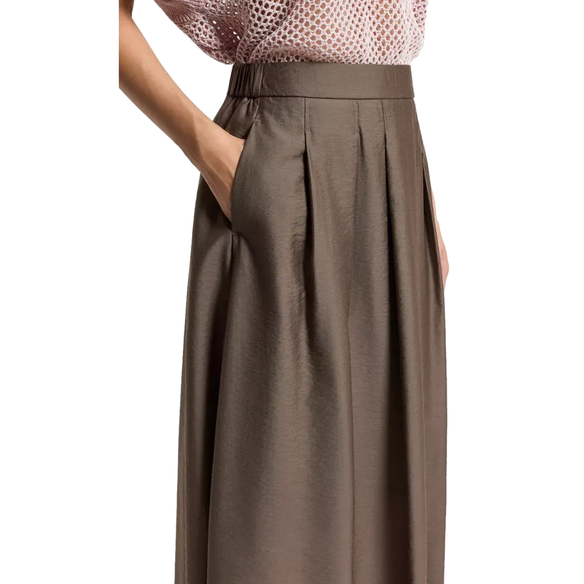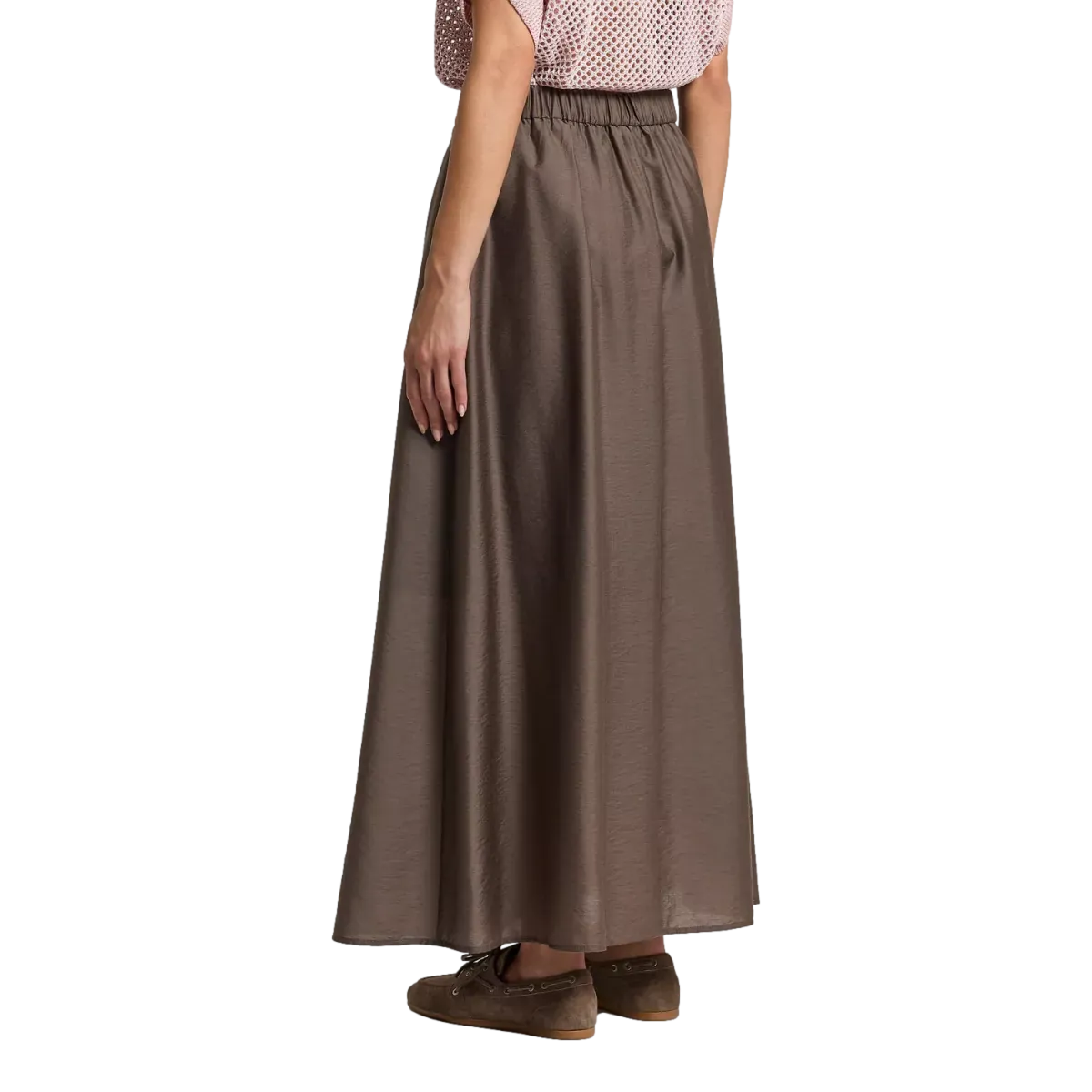 Deze lange, gevoerde rok van Peserico combineert innovatie en elegantie. Gemaakt van lichtgewicht technical canvas in een lyocell-blend, een duurzame, natuurlijke vezel die zacht, ademend en slijtvast is, voelt de rok luxe aan en blijft hij comfortabel, zelfs bij langdurig dragen.