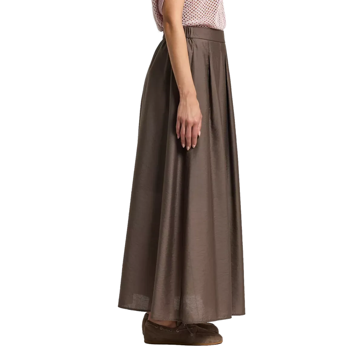 In bark brown is deze rok perfect te combineren met de mini trench coat voor een total look met moderne, verfijnde allure.