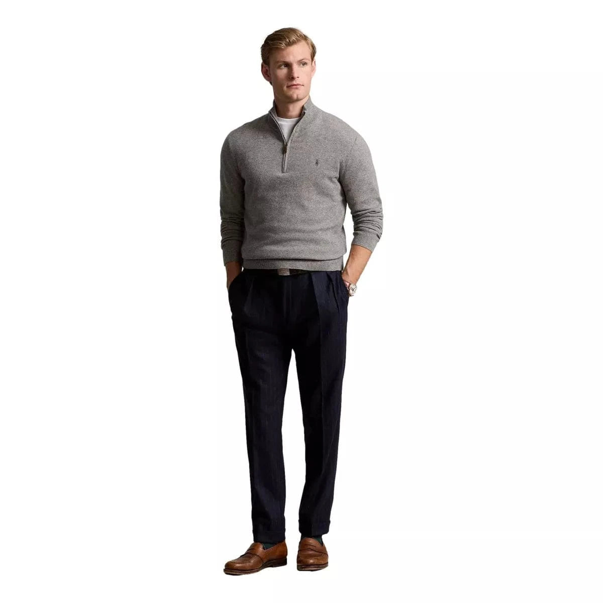 Polo Ralph Lauren Wollen Trui Kwartrits Grijs