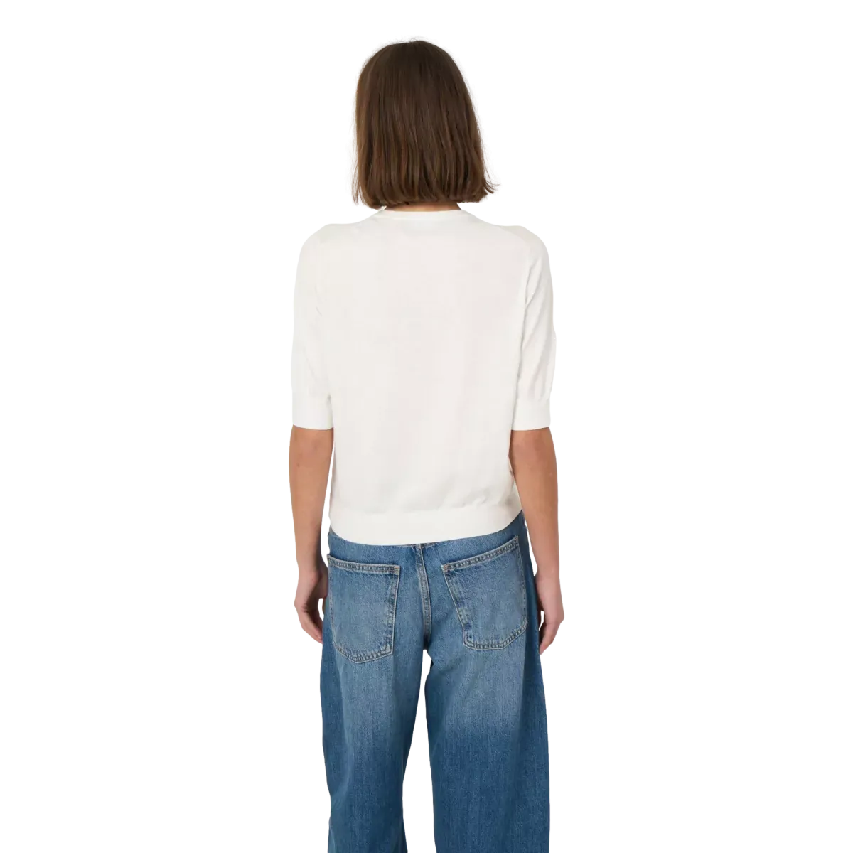 Het rechte, boxy model geeft de trui een moderne en eigentijdse look. Afgewerkt met een geribde ronde hals, ribboorden en korte mouwen is dit een veelzijdig item dat perfect is voor gelaagde outfits, moeiteloos te dragen van dag tot avond.