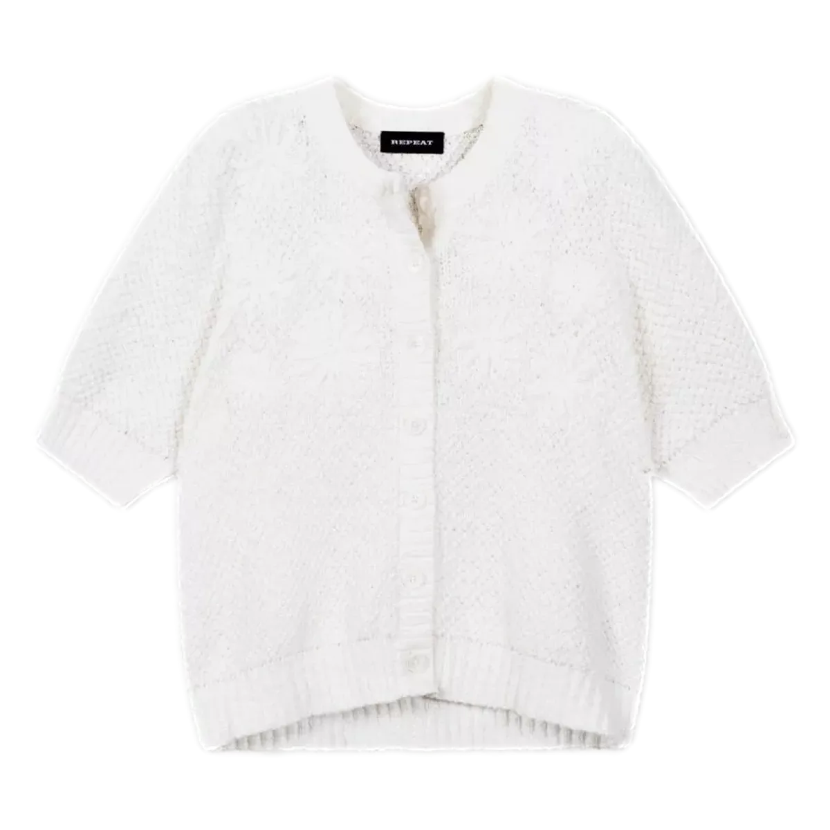 Dit Repeat vest is uitgevoerd in zuiver katoen met slub-garen, wat zorgt voor een levendige, tactiele structuur met een natuurlijke uitstraling. De handgeborduurde bloemen van REPEAT cashmere geven het ontwerp een ambachtelijk en verfijnd accent dat elk exemplaar uniek maakt.