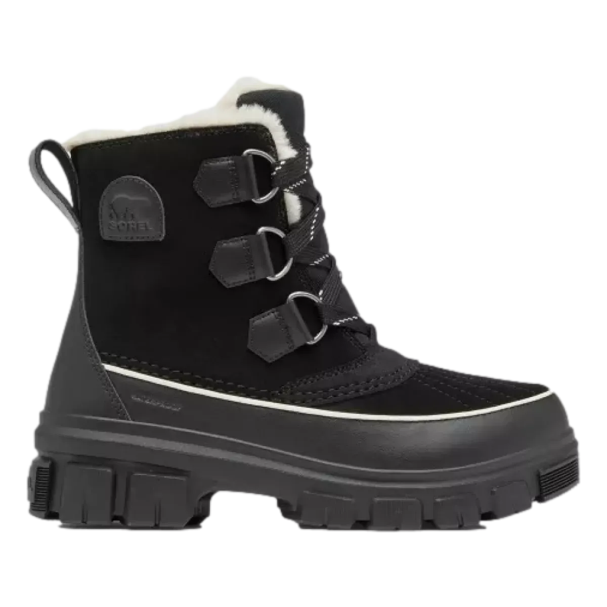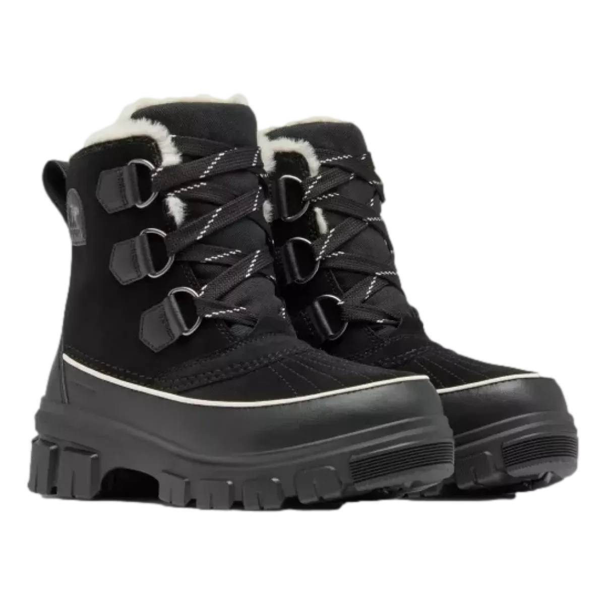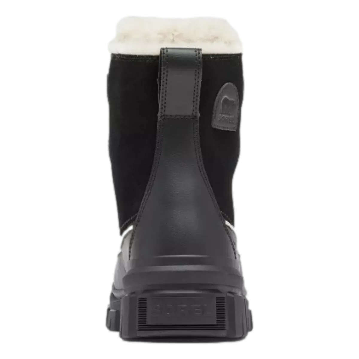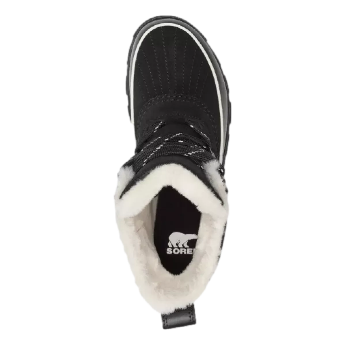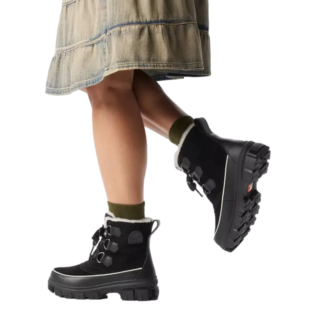 De rubberen buitenzool met grof profiel biedt uitstekende grip op sneeuw en ijs, terwijl de klassieke zwarte kleur moeiteloos combineert met elke winteroutfit. De subtiele Sorel-branding en het tijdloze ontwerp maken deze snowboot zowel praktisch als modieus.
