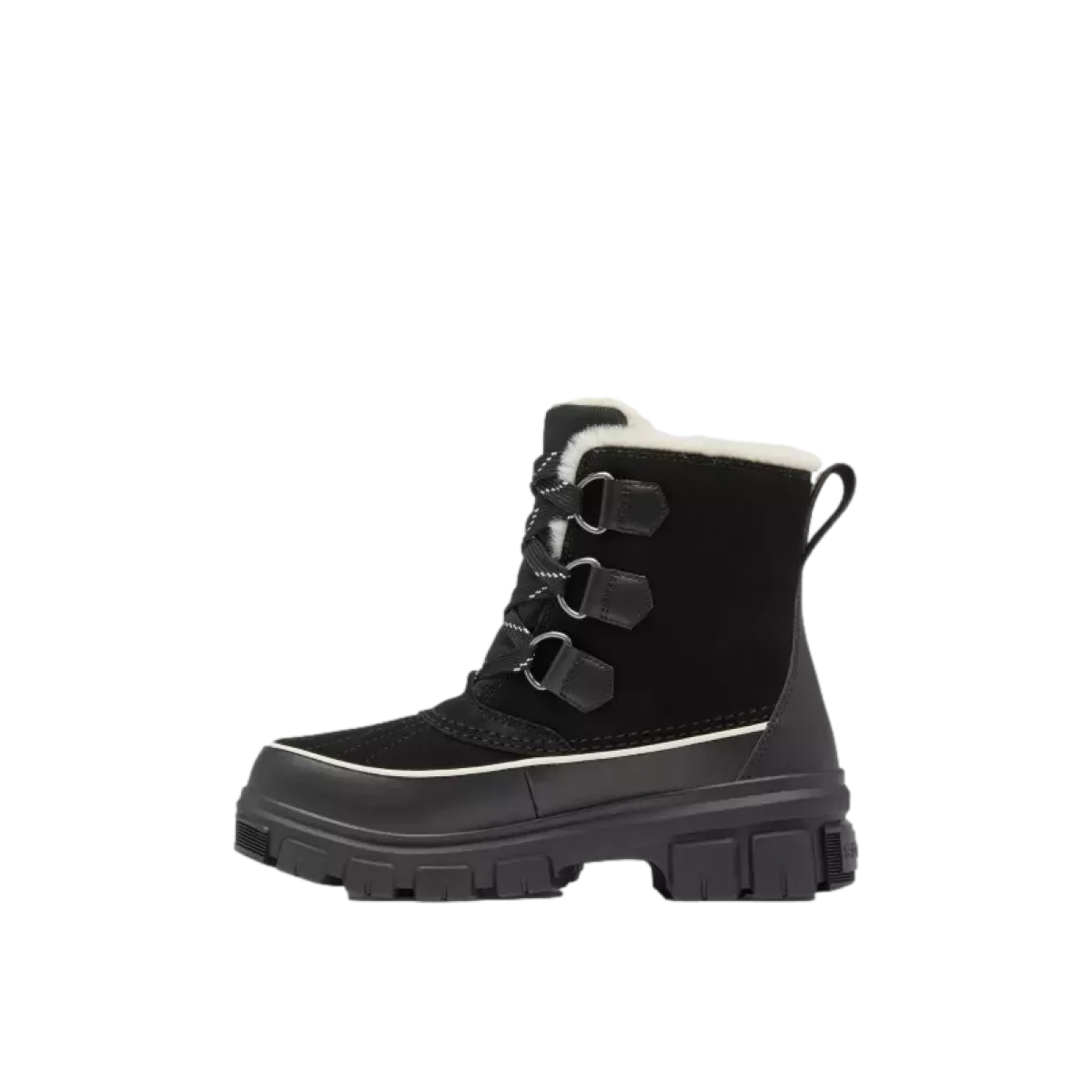 De Sorel Torino Snowboot Zwart combineert robuuste winterbescherming met een elegante, moderne look. Deze snowboot is speciaal ontworpen voor koude, natte en besneeuwde dagen – perfect voor wie warmte, comfort en stijl wil verenigen.