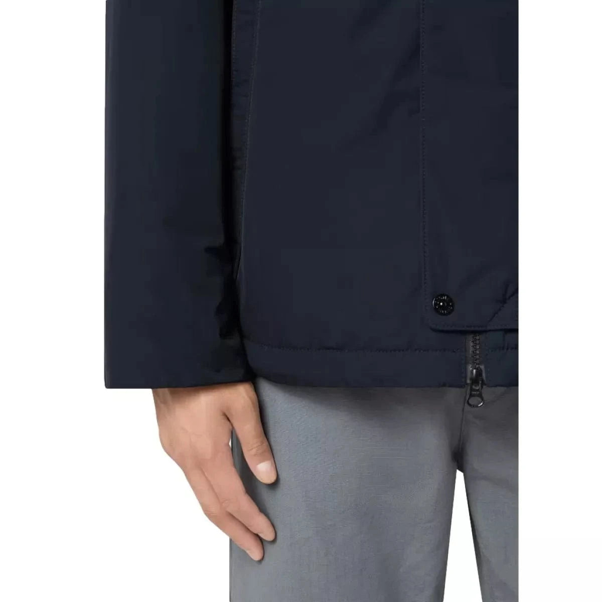 - Ritssluiting in twee richtingen, verborgen onder drukknoopsluiting.