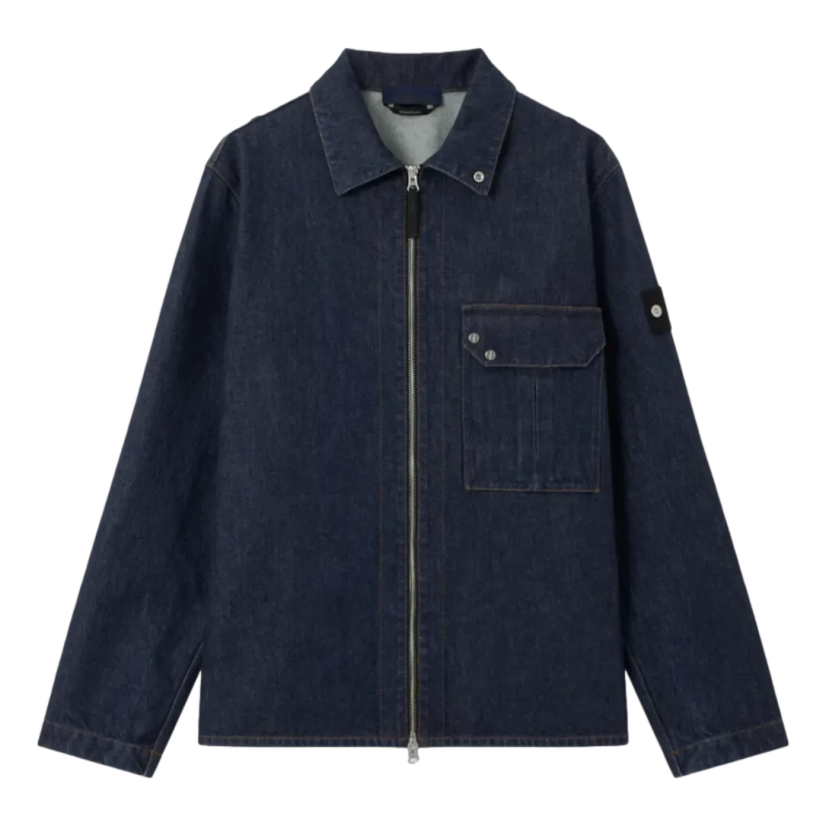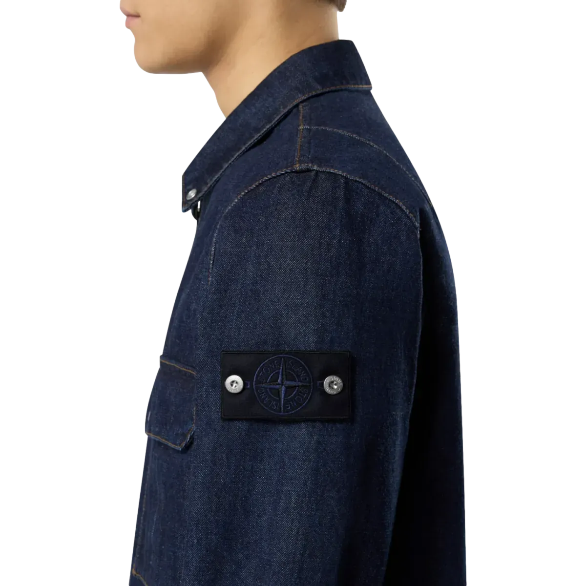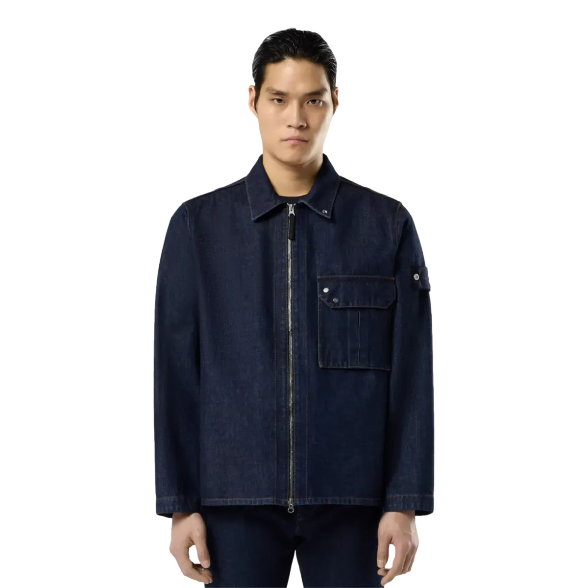 Overshirt van 13.5oz denim, geweven van indigo-geverfde katoengarens in een 4-draads twillbinding die zorgt voor het kenmerkende diagonale denimpatroon. Het afgewerkte kledingstuk is licht gewassen voor een zachte feel. Kraag met drukknoop om staand te dragen. Borstzak met plooi en klep met vier drukknoopsluitingen, waarvan twee verborgen. Darts op de achterzijde van de schouders. Stone Island Denim Research badge op de linkermouw. Verstelbare manchetten met drukknoop. Tweeweg ritssluiting.