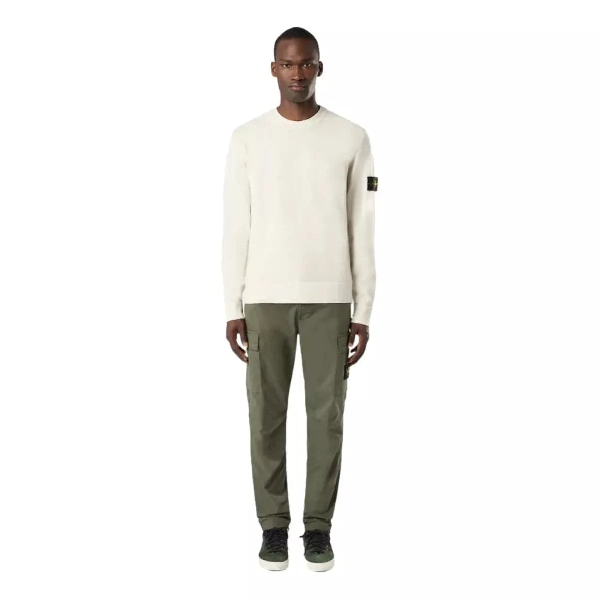 Effen kraag. Geribbeld motief op schouders, armsgaten en zijkanten. Stone Island-badge op de linkermouw. Rechte manchetten en onderkant. Normale pasvorm.