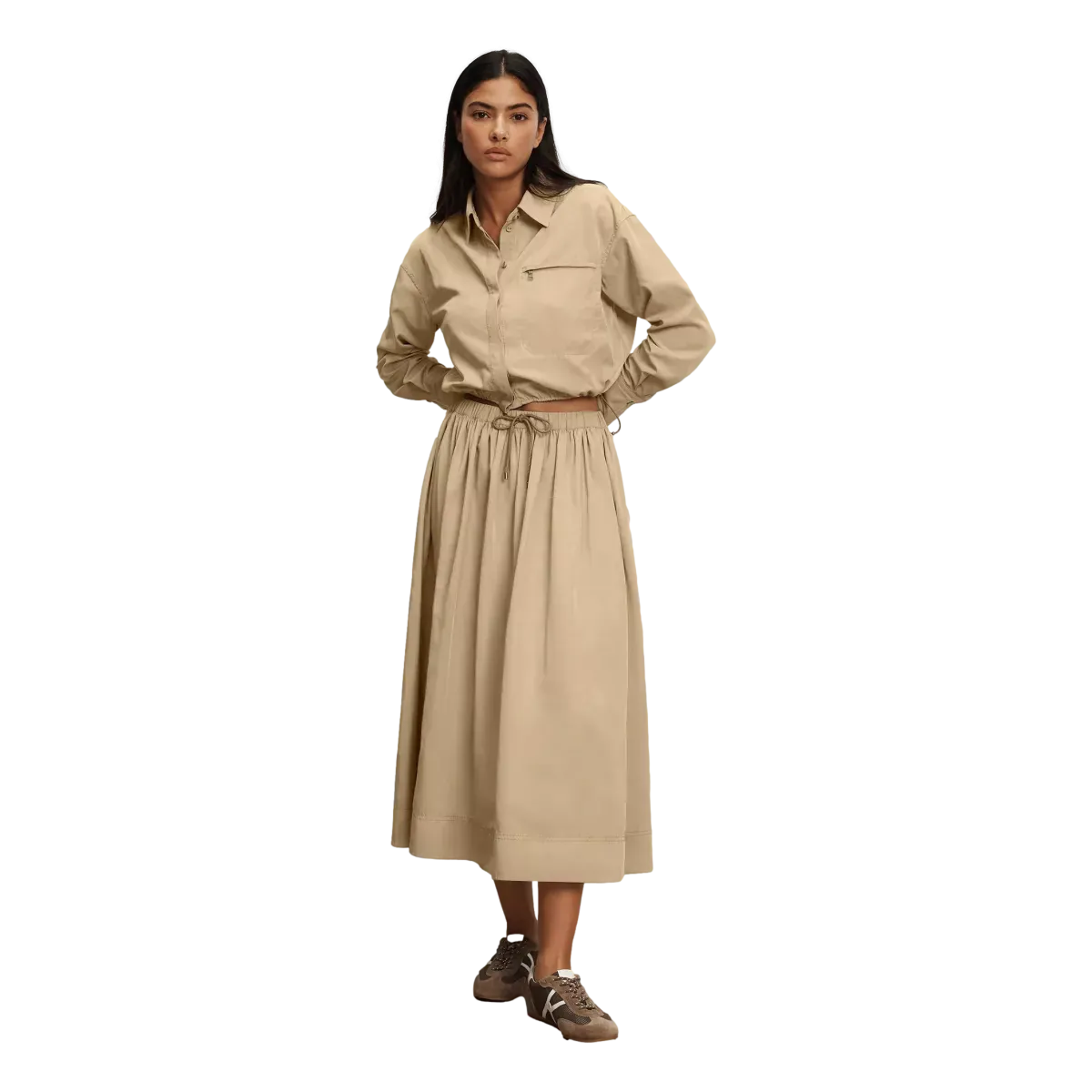 Waar precisie in tailoring samenkomt met functioneel design. De Veronica Beard Wilfred tilt het klassieke button-down shirt naar een hoger niveau met een sportieve, eigentijdse twist. Gemaakt van zachte, technische taffeta met een waterafstotende finish, perfect voor wisselende omstandigheden en een actieve lifestyle.
