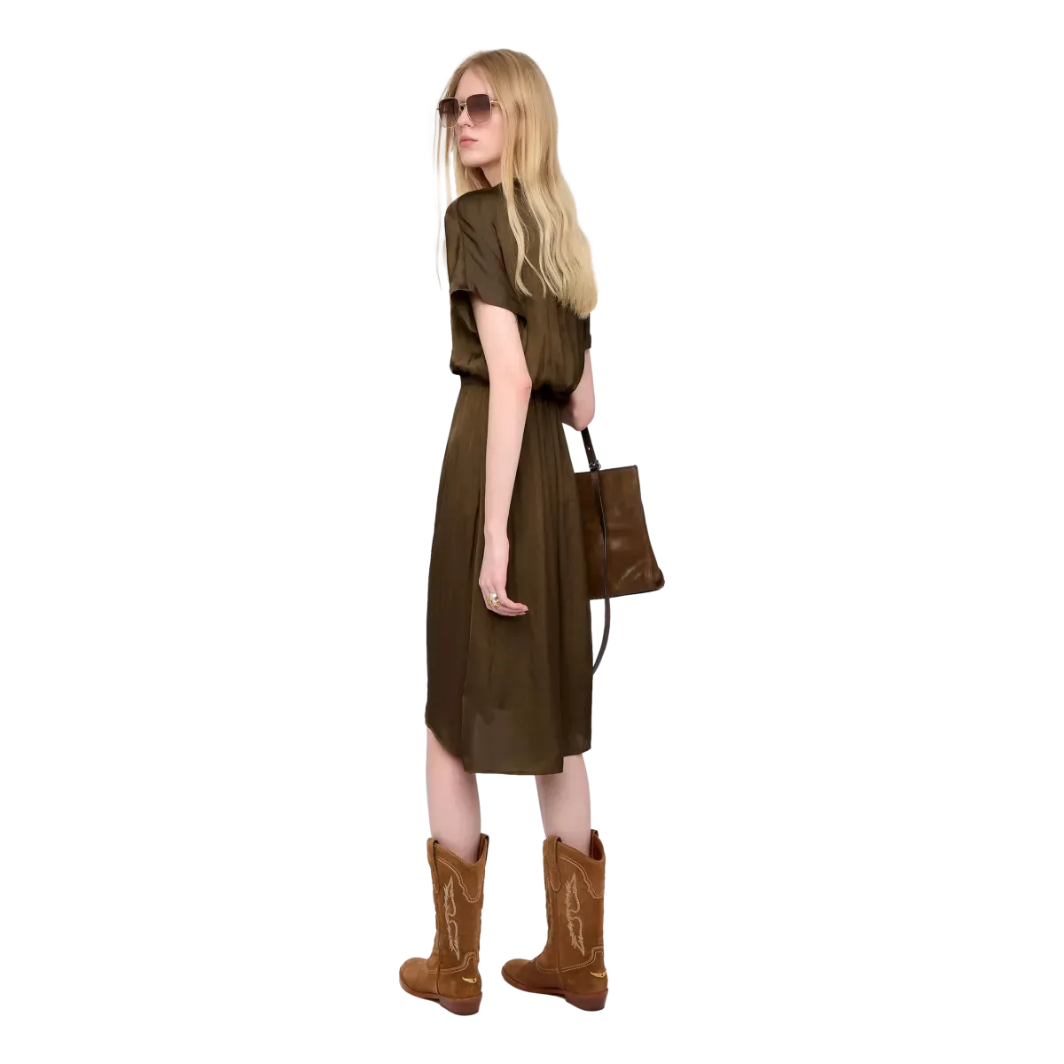Details van de Zadig & Voltaire Riaz Satijnen Jurk Donkergroen:
